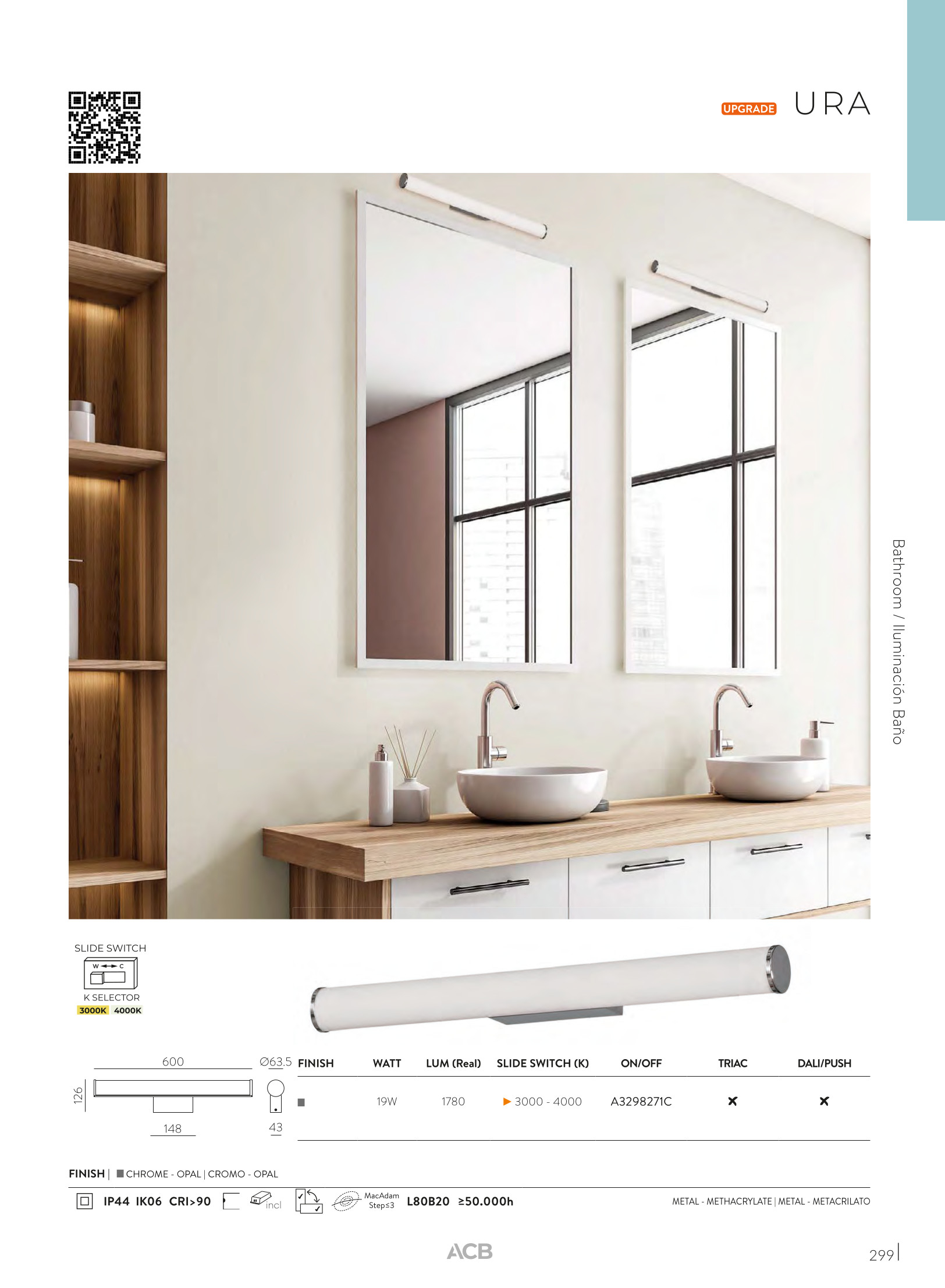 Лед аплик A3298271C ще осигури комфорт и естетика във всяко помещение, в което се постави. Цялостната визия и дизайн на led лампата и вложените в изработката й материали, като хромиран метал, полимер в цвят бял опал, възможност за промяна на цветната температура чрез превключвател ССТ 3000/4000К, ще допринесат за един неповторим стил. Благодарение на дългогодишния опит в производството на лед осветление, качествените материали и строгия контрол на качеството на изработка на производителя ACB (Испания), A3298271C е на високо европейско ниво.