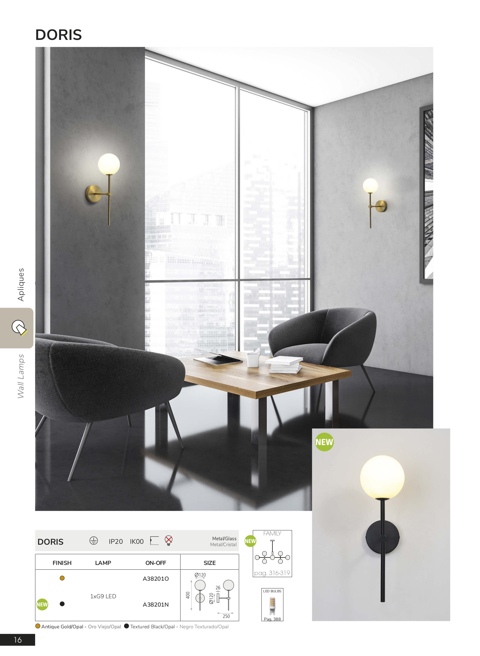 Осветителното тяло A38201N (16/3820 G9 Opal/Textured Black) ще осигури комфорт и естетика във всяко помещение, в което се постави. Цялостната визия и дизайн на лампата и вложените в изработката й материали, като метал в черен цвят, стъкло в цвят бял опал, ще допринесат за един неповторим стил. Благодарение на дългогодишния опит, качествените материали и строгия контрол на качеството на изработка на производителя ACB (Испания), A38201N (16/3820 G9 Opal/Textured Black) е на високо европейско ниво.