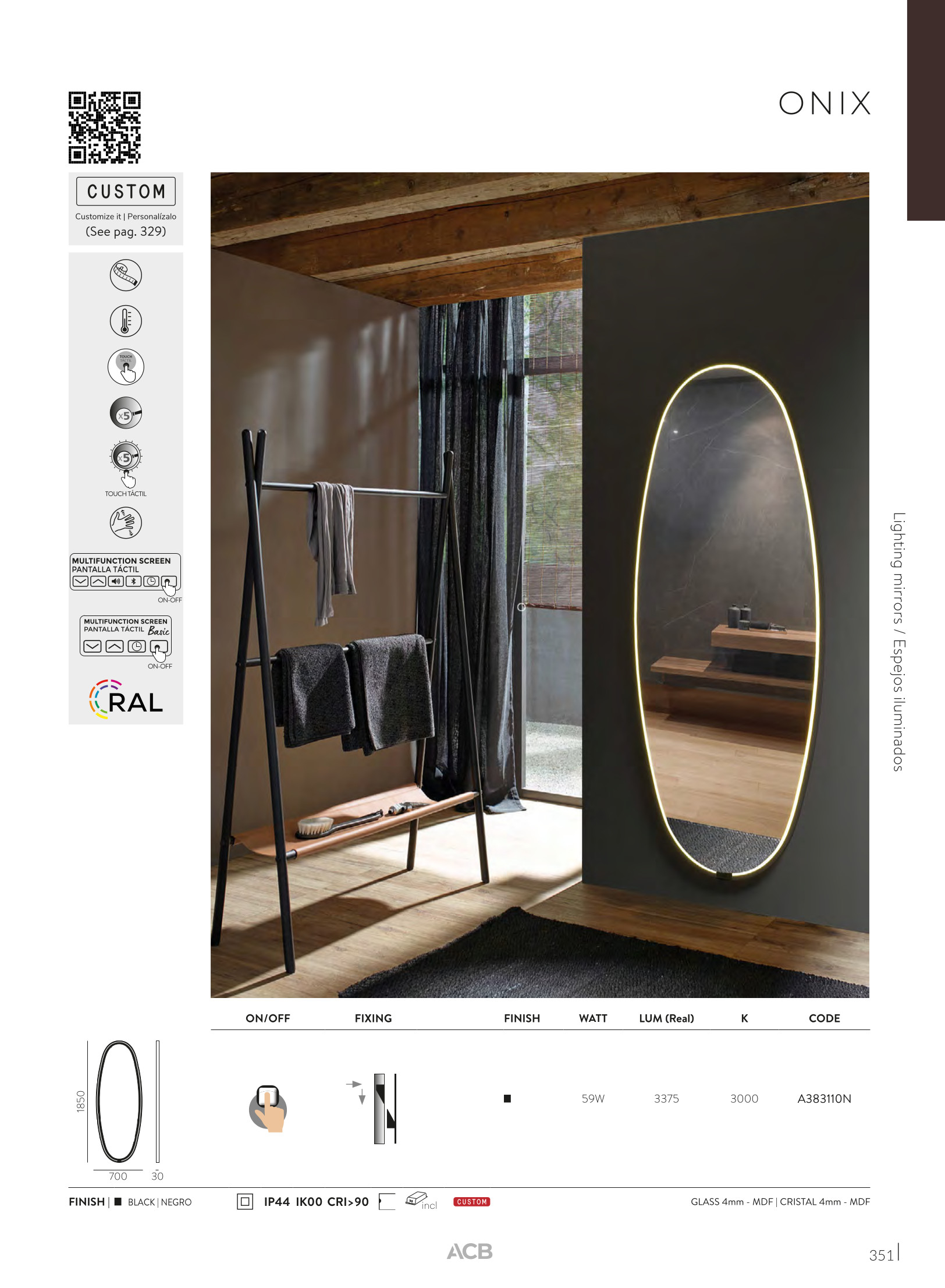 Лед аплик A383110N (Mirror LED 3000K) ще осигури комфорт и естетика във всяко помещение, в което се постави. Цялостната визия и дизайн на led лампата и вложените в изработката й материали, като огледало 4mm, MDF, възможност за персонализиране, ще допринесат за един неповторим стил. Благодарение на дългогодишния опит в производството на лед осветление, качествените материали и строгия контрол на качеството на изработка на производителя ACB (Испания), A383110N (Mirror LED 3000K) е на високо европейско ниво.