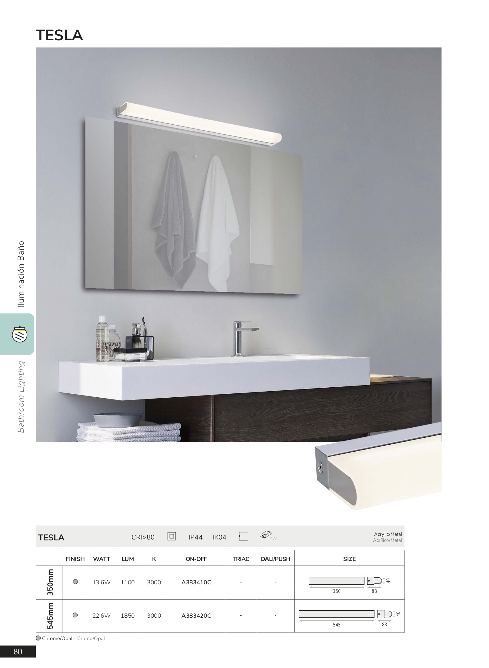Осветителното тяло A383420C (Wall /55cm LED 3000K Opal/Chrome) представлява аплик в съвременен стил. A383420C (Wall /55cm LED 3000K Opal/Chrome) е от категорията осветителни тела и е подходящо за осветяване на различни помещения и пространства като: баня, кухня.
