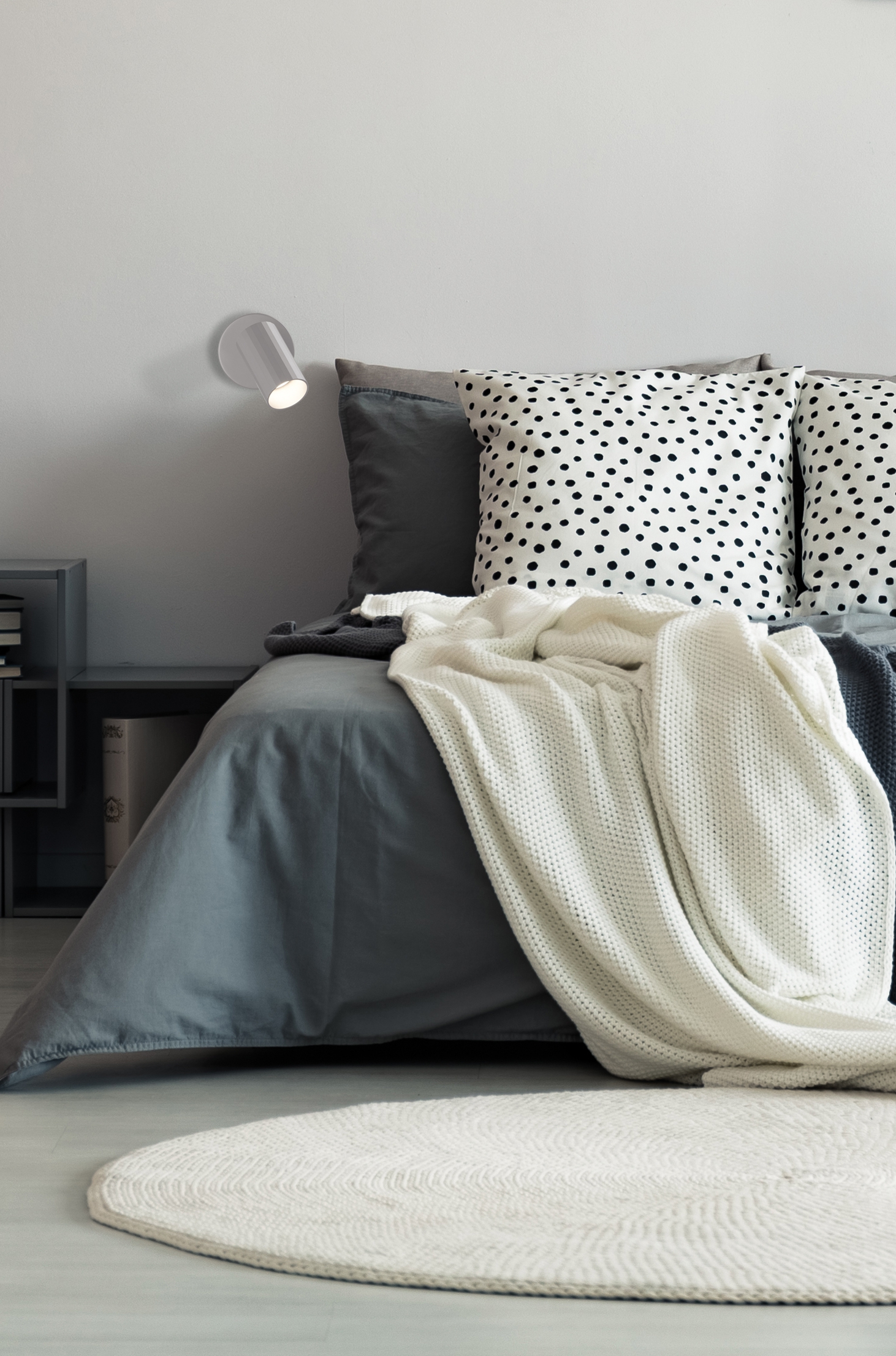 За стила, хармонията и естетиката на обстановката допринасят, както цялостната визия и дизайн на осветителното тяло, така и вложените в изработката му качествени материали, като: алуминиева основа в бял цвят, подвижно алуминиево осветително тяло в бяло, ъгъл на завъртане 360° и ъгъл на светлинния лъч 90°.