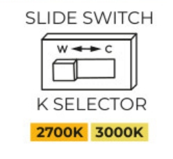 алуминий в цвят техническо злато, полимер, възможност за смяна на цветната температура ССТ 2700/3000К с плъзгач