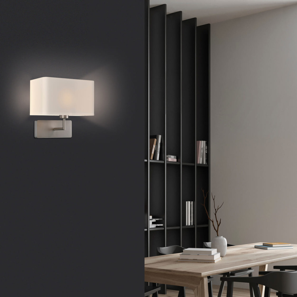 За стила и естетиката на обстановката допринасят, както цялостната визия и дизайн на осветителното тяло, така и вложените в изработката качествени материали, като: алуминий в цвят матиран никел, абажур от текстил в бял цвят.