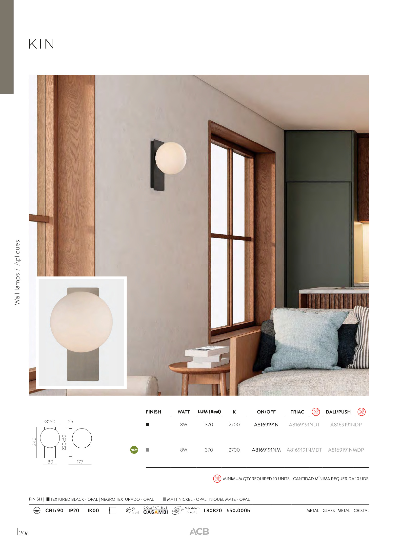 Лед аплик A8169191NM ще осигури комфорт и естетика във всяко помещение, в което се постави. Цялостната визия и дизайн на led лампата и вложените в изработката й материали, като метал в цвят матов никел, стъкло в цвят бял опал, ще допринесат за един неповторим стил. Благодарение на дългогодишния опит в производството на лед осветление, качествените материали и строгия контрол на качеството на изработка на производителя ACB (Испания), A8169191NM е на високо европейско ниво.