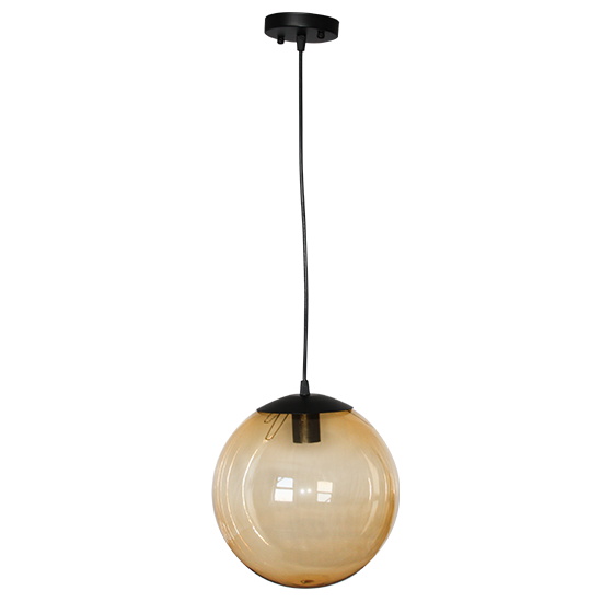 метал в черен цвят, подсилен полимер с UV защита в цвят кехлибар, регулируема дължина, керамична фасунга