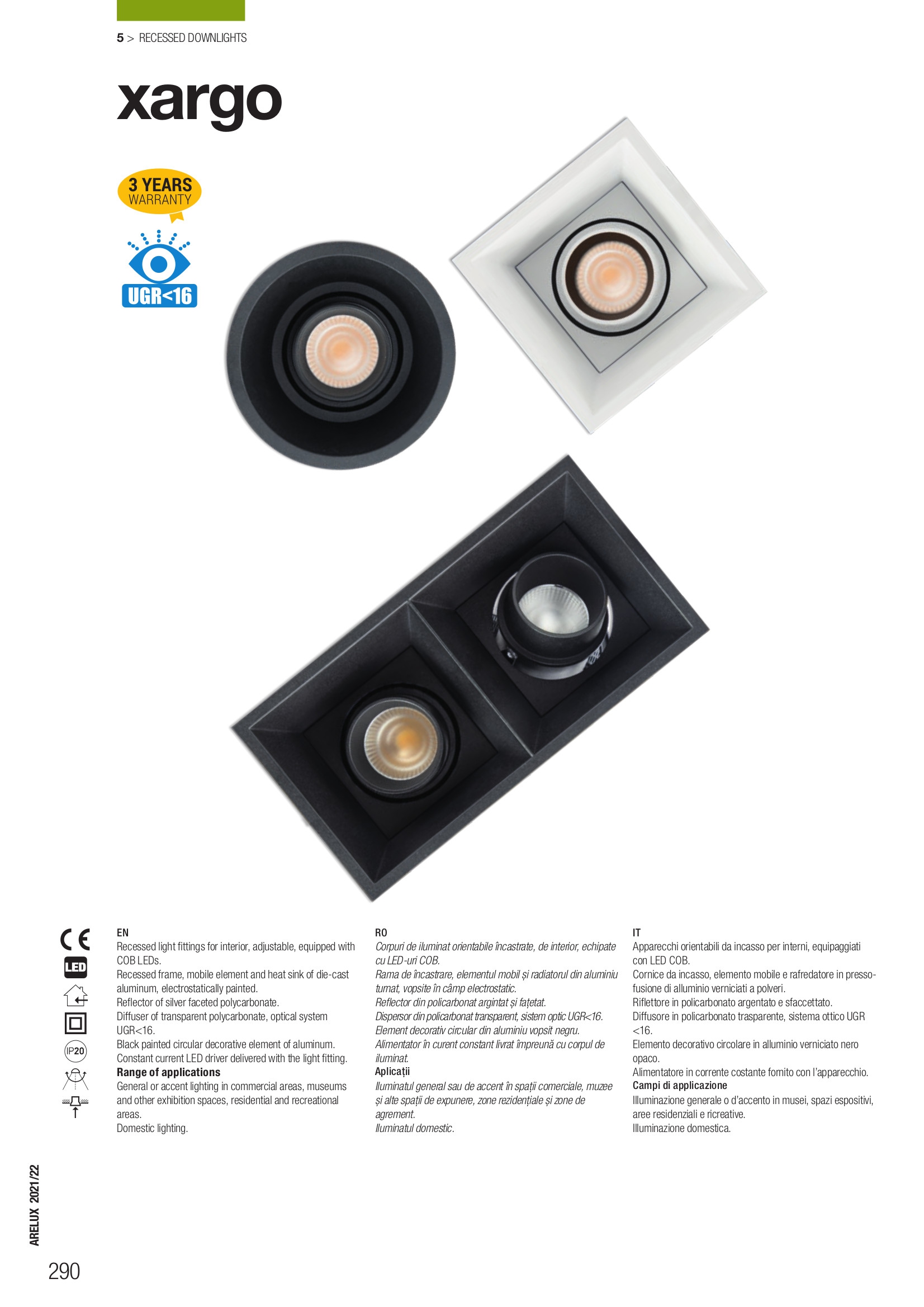 Лед луничка / луна, спот лампа AGR03WW MBK/BK ще осигури комфорт и естетика във всяко помещение, в което се постави. Цялостната визия и дизайн на led лампата и вложените в изработката й материали, като тяло от лят под налягане алуминий в черен цвят, радиатор и кръгъл декоративен пръстен от алуминий в черен цвят, рефлектор от сребрист фасетиран поликарбонат, разсейвател от прозрачен поликарбонат, ще допринесат за един неповторим стил. Благодарение на дългогодишния опит в производството на лед осветление, качествените материали и строгия контрол на качеството на изработка на дизайнерската линия Redo Arelux на производителя Redo (Румъния), AGR03WW MBK/BK е на високо европейско ниво.