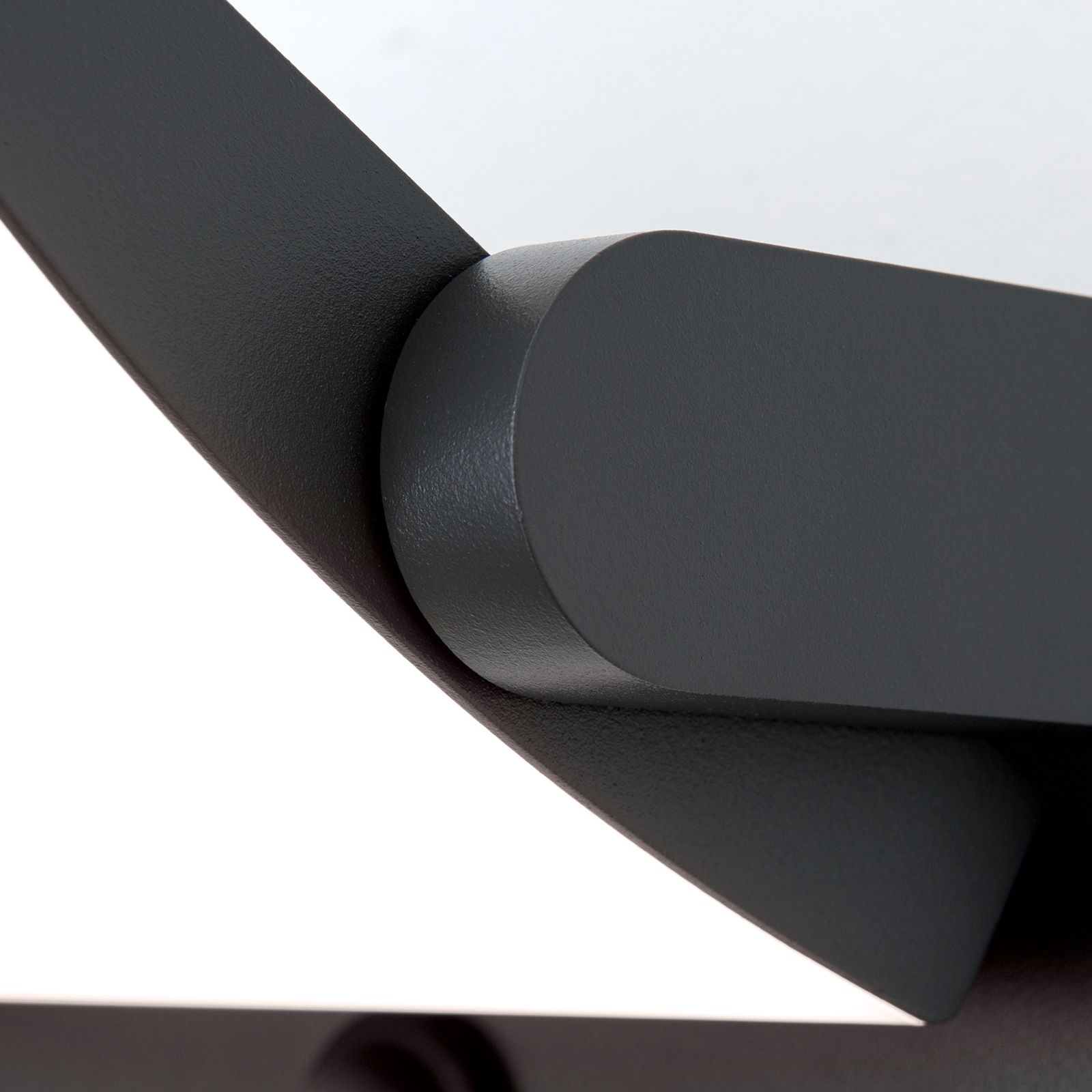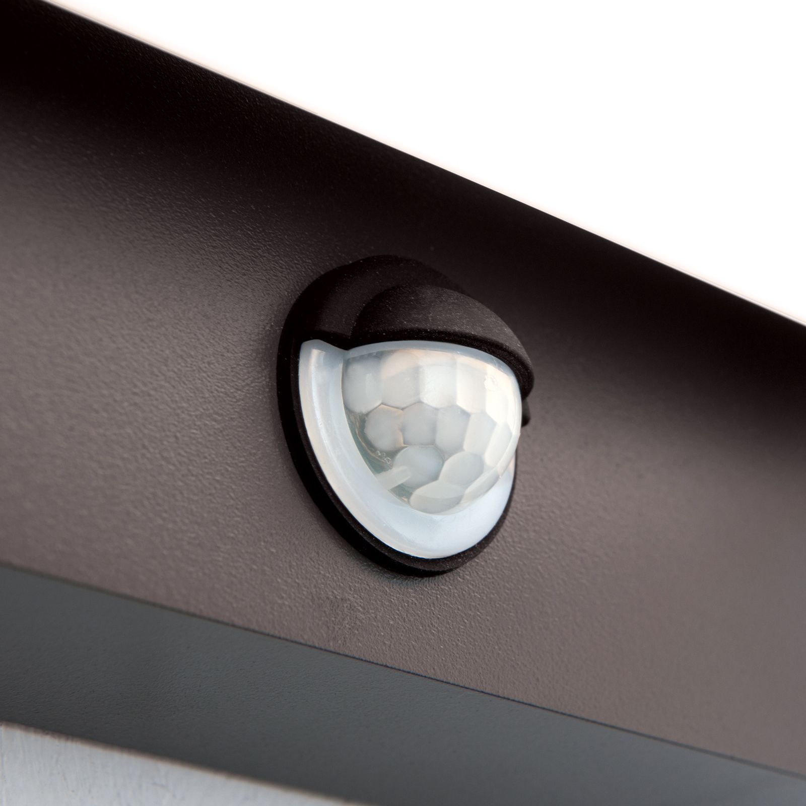 алуминий в цвят антрацит, полимер в цвят опалово бяло, възможност за завъртане на светещата част на 340°, възможност за регулиране на продължителността на светене (3s - 3min) и яркостта (5 - 2000 lx)