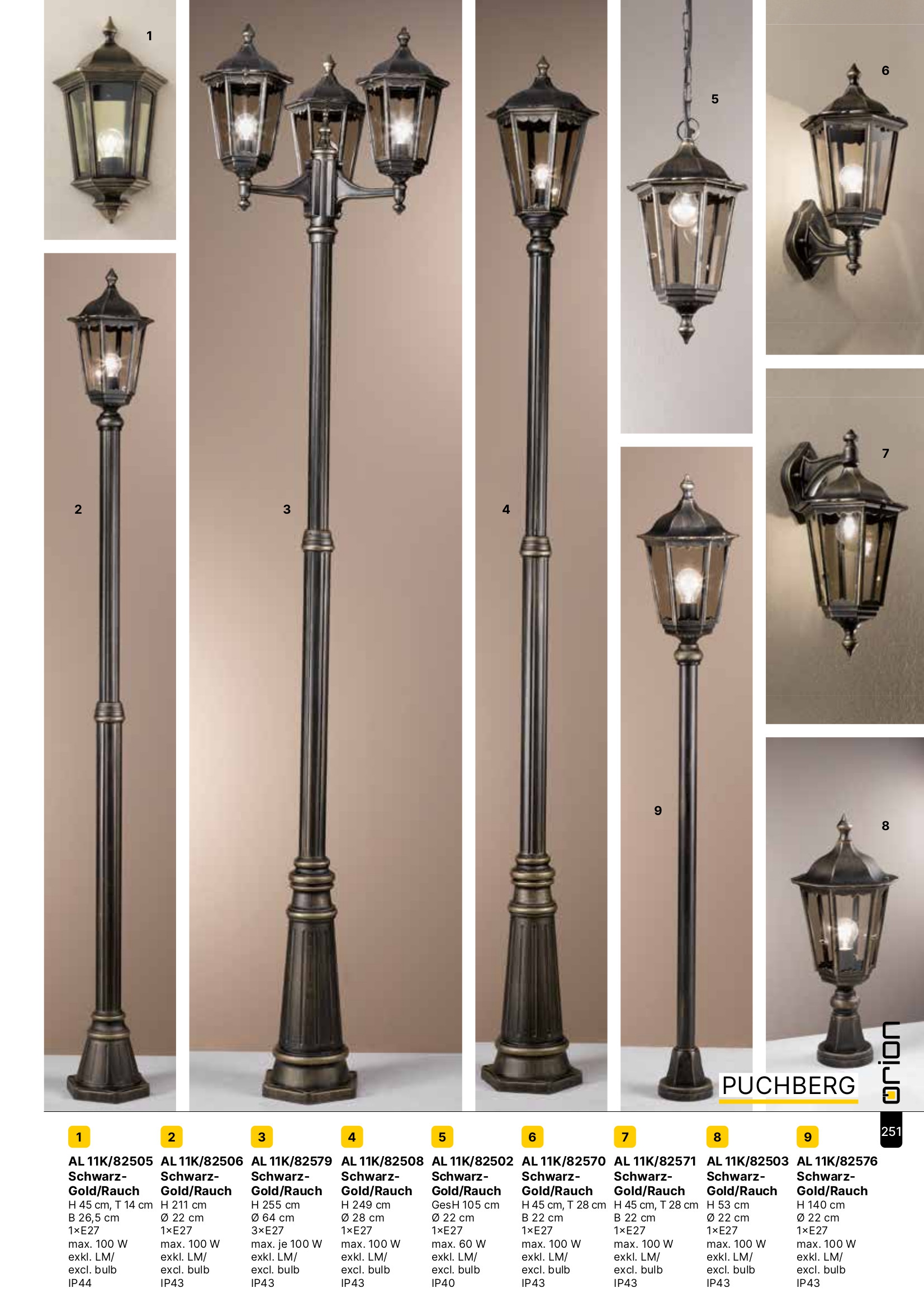външна лампа AL 11K/82503 schwarz-gold/rauch (1xE27)
