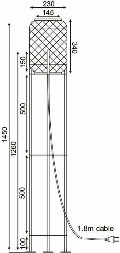Ел. мощност 1 х 28 W Размери Ф23см x 34см x 120см Производител ACA-Lighting, Гърция