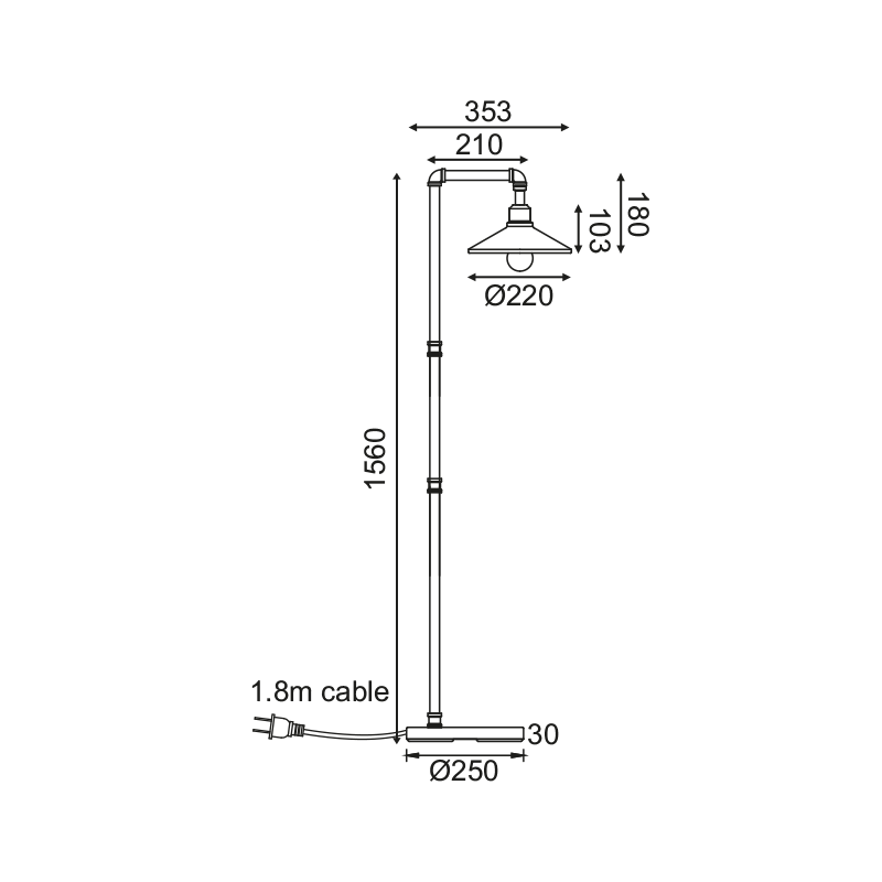 Ел. мощност 1 х 40 W Размери 55.5см x Ф20см x 34.3см Производител ACA-Lighting, Гърция