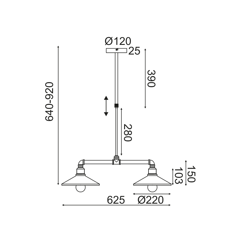 62.5см x Ф22см x 64-92см