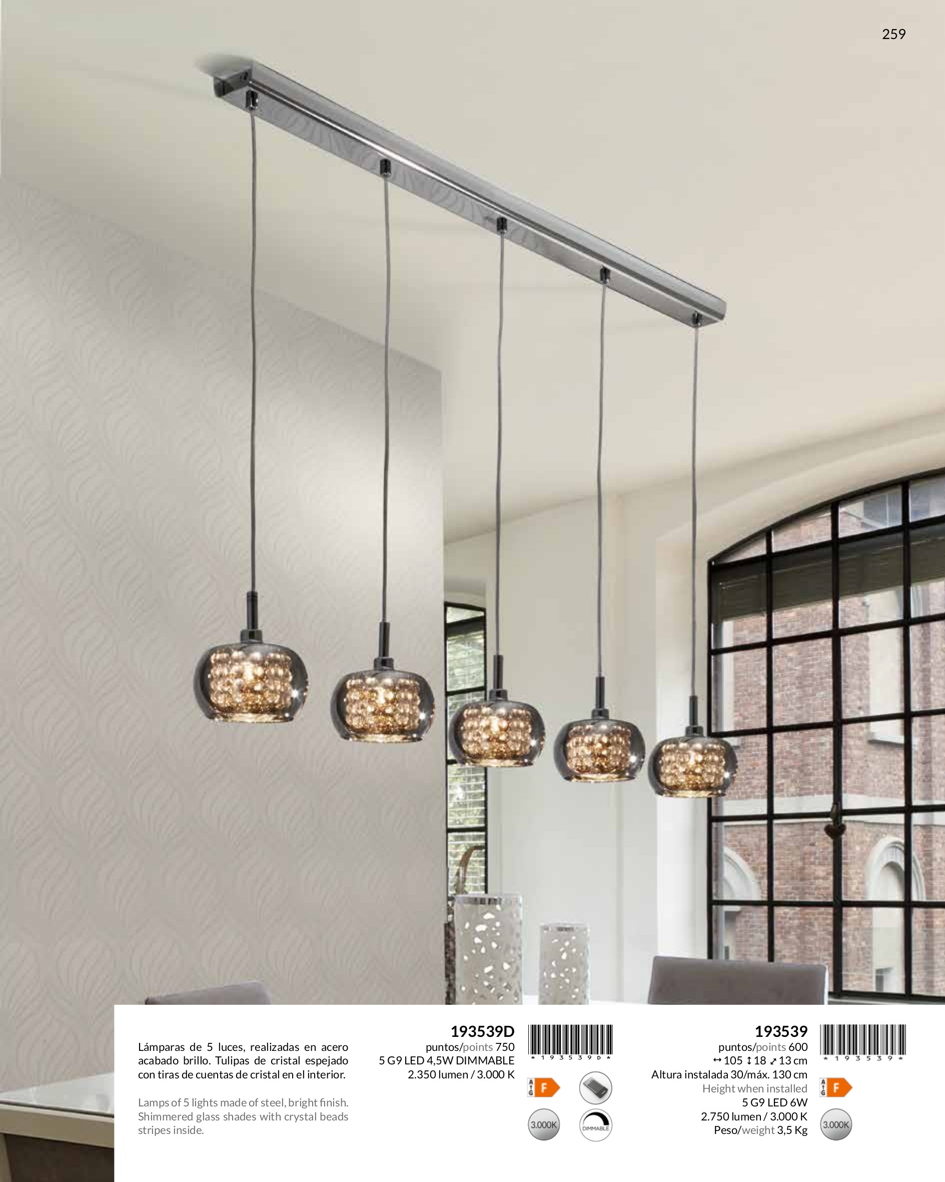 Осветителното тяло 193539 ARIAN 5xG9 представлява лед полилей в съвременен стил. 193539 ARIAN 5xG9 е от категорията и е подходящо за осветяване на различни помещения и пространства като: всекидневна / хол, спалня, кухня, трапезария, офис.
