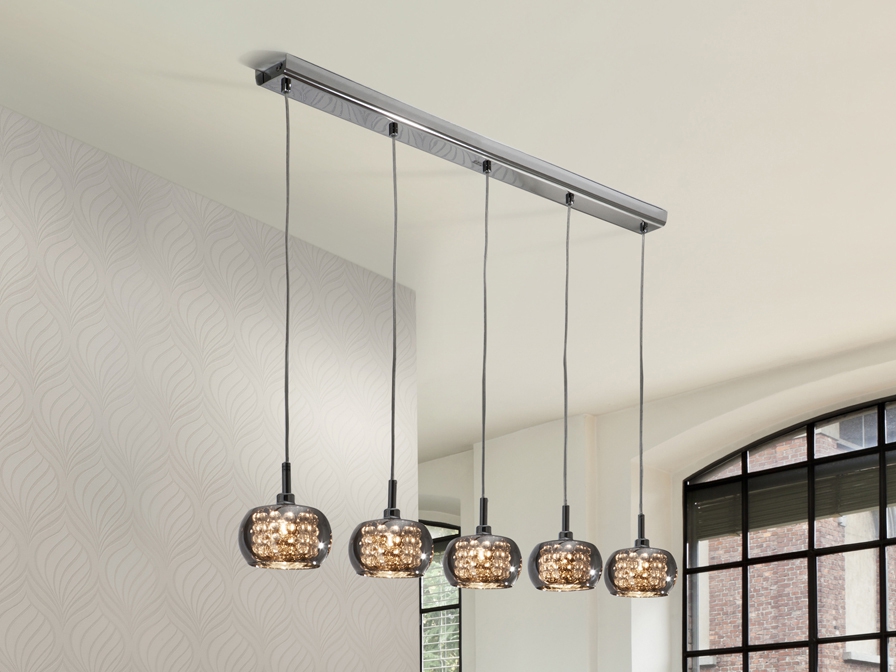 Лед полилей 193539 ARIAN 5xG9 ще осигури комфорт и естетика във всяко помещение, в което се постави. Цялостната визия и дизайн на led лампата и вложените в изработката й материали, като стомана с огледално покритие, блестящи стъклени абажури с нанизи от кристални мъниста вътре, ще допринесат за един неповторим стил. Благодарение на дългогодишния опит в производството на лед осветление, качествените материали и строгия контрол на качеството на изработка на производителя Schuller (Испания), 193539 ARIAN 5xG9 е на високо европейско ниво.