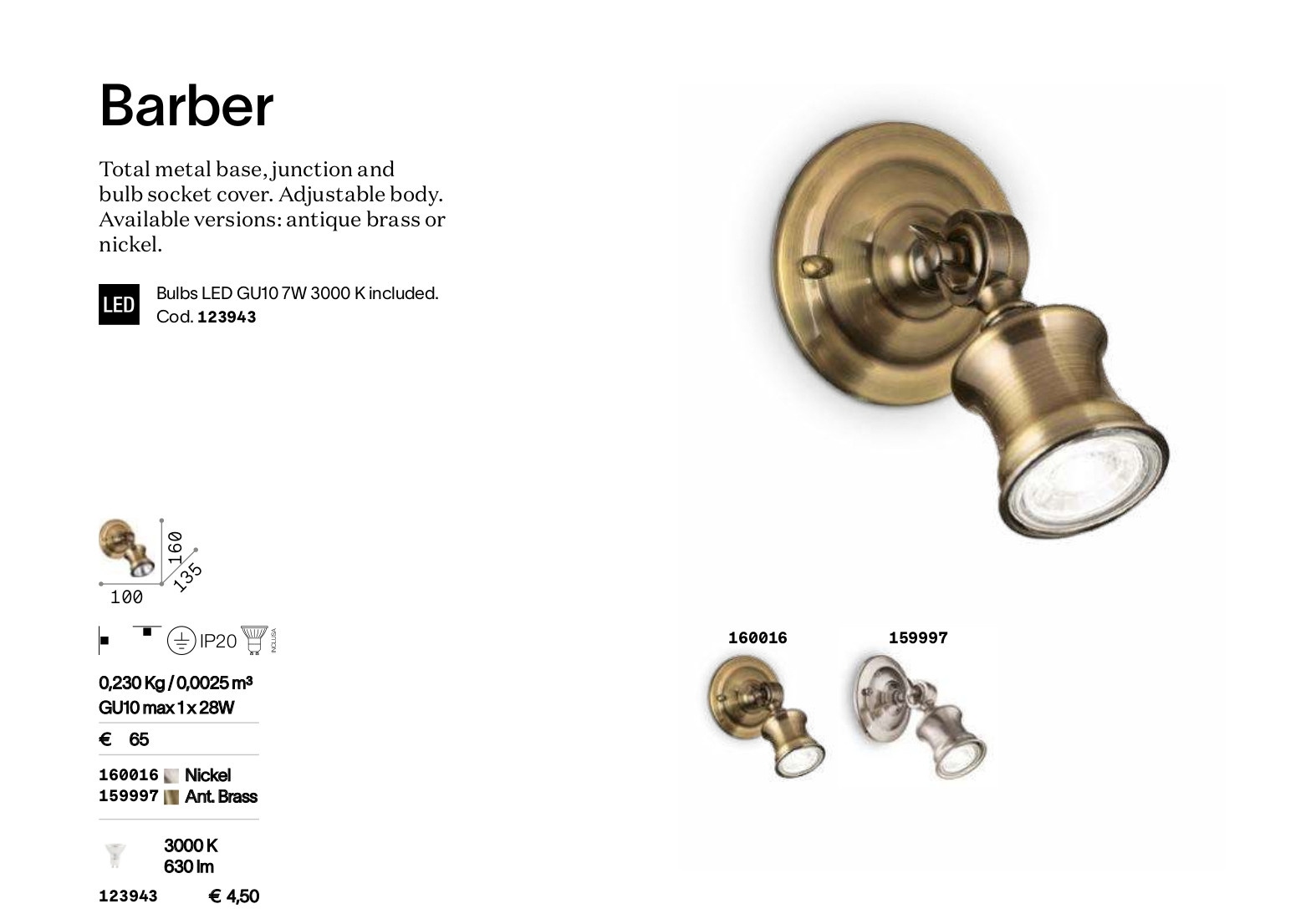 Лед аплик @BARBER AP1 NICKEL ще осигури комфорт и естетика във всяко помещение, в което се постави. Цялостната визия и дизайн на led лампата и вложените в изработката й материали, като метал в цвят никел, регулиране посоката на светене, ще допринесат за един неповторим стил. Благодарение на дългогодишния опит в производството на лед осветление, качествените материали и строгия контрол на качеството на изработка на производителя Ideal-Lux (Италия), @BARBER AP1 NICKEL е на високо европейско ниво.