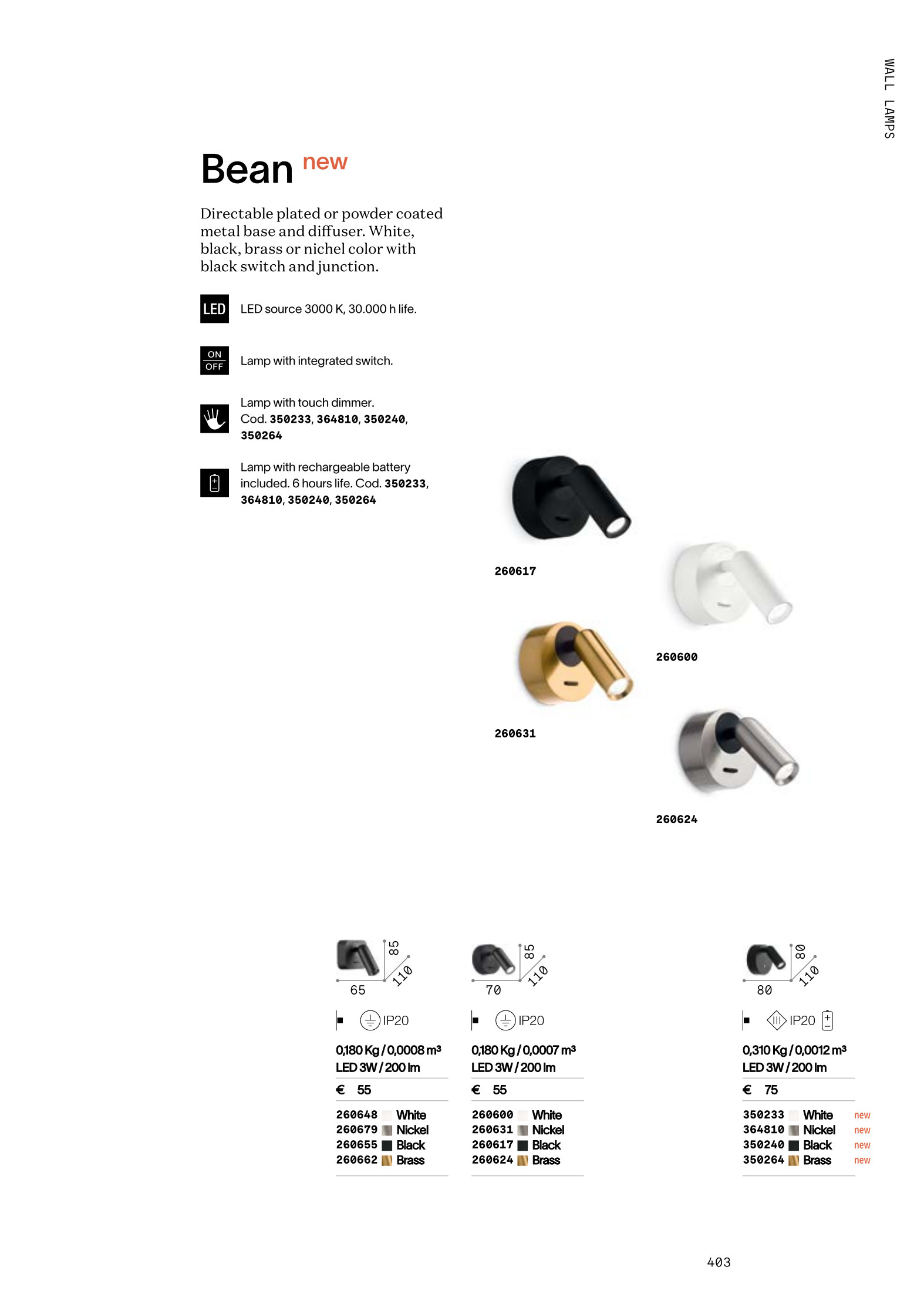 аплик, спот лампа BEAN AP ROUND RECHARGEABLE OTTONE