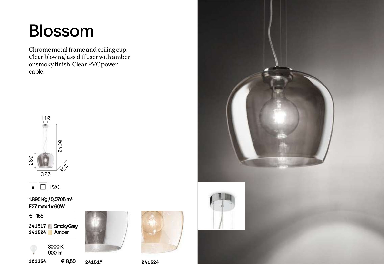 Магазини за осветителни тела ОРИОН представят осветителното тяло BLOSSOM SP1 AMBRA, което представлява пендел, създадено в съвременен стил. Като елемент от категорията това осветително тяло е подходящо за различни помещения и пространства във Вашия дом или офис, като е изключително подходящо например за всекидневна / хол, спалня, кухня, трапезария, коридор, антре, офис.