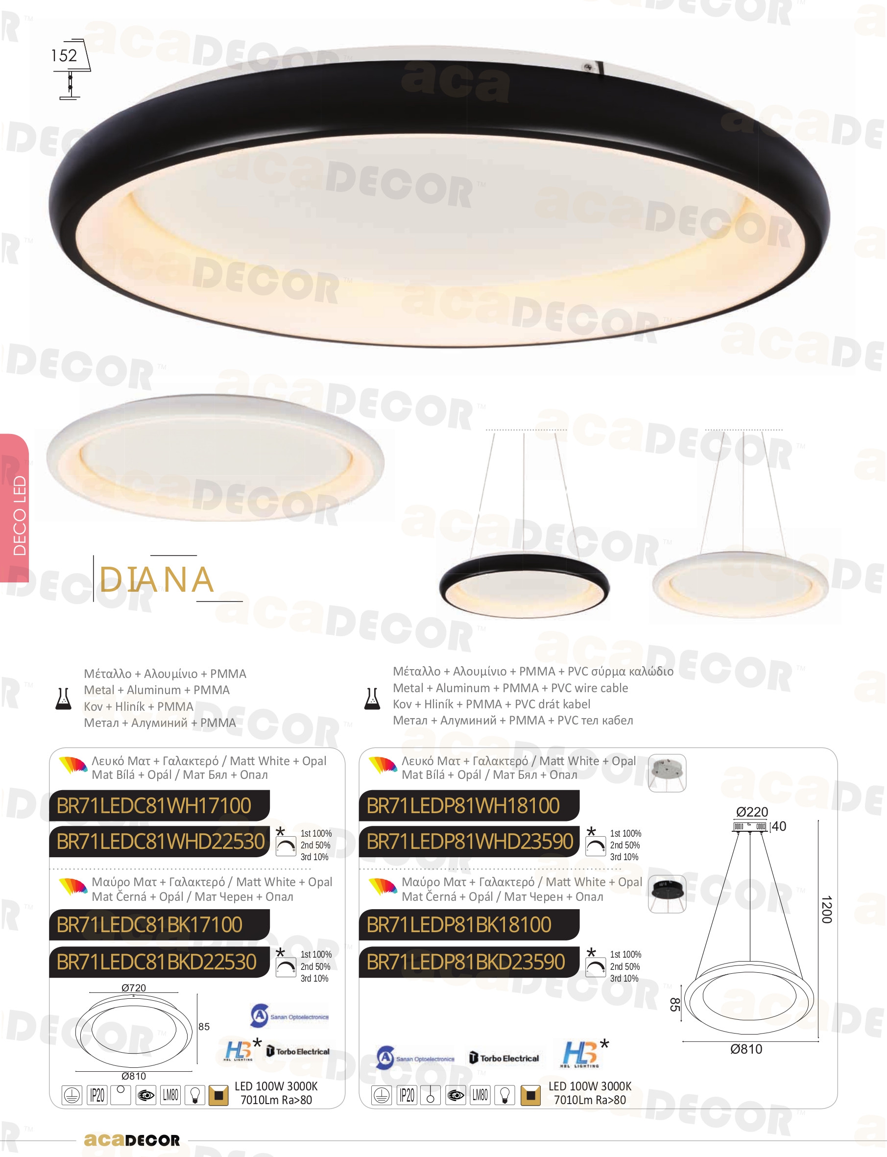 Ел. мощност 1 x 100 W Размери Ф81см x 8.5см Производител ACA-Lighting, Гърция