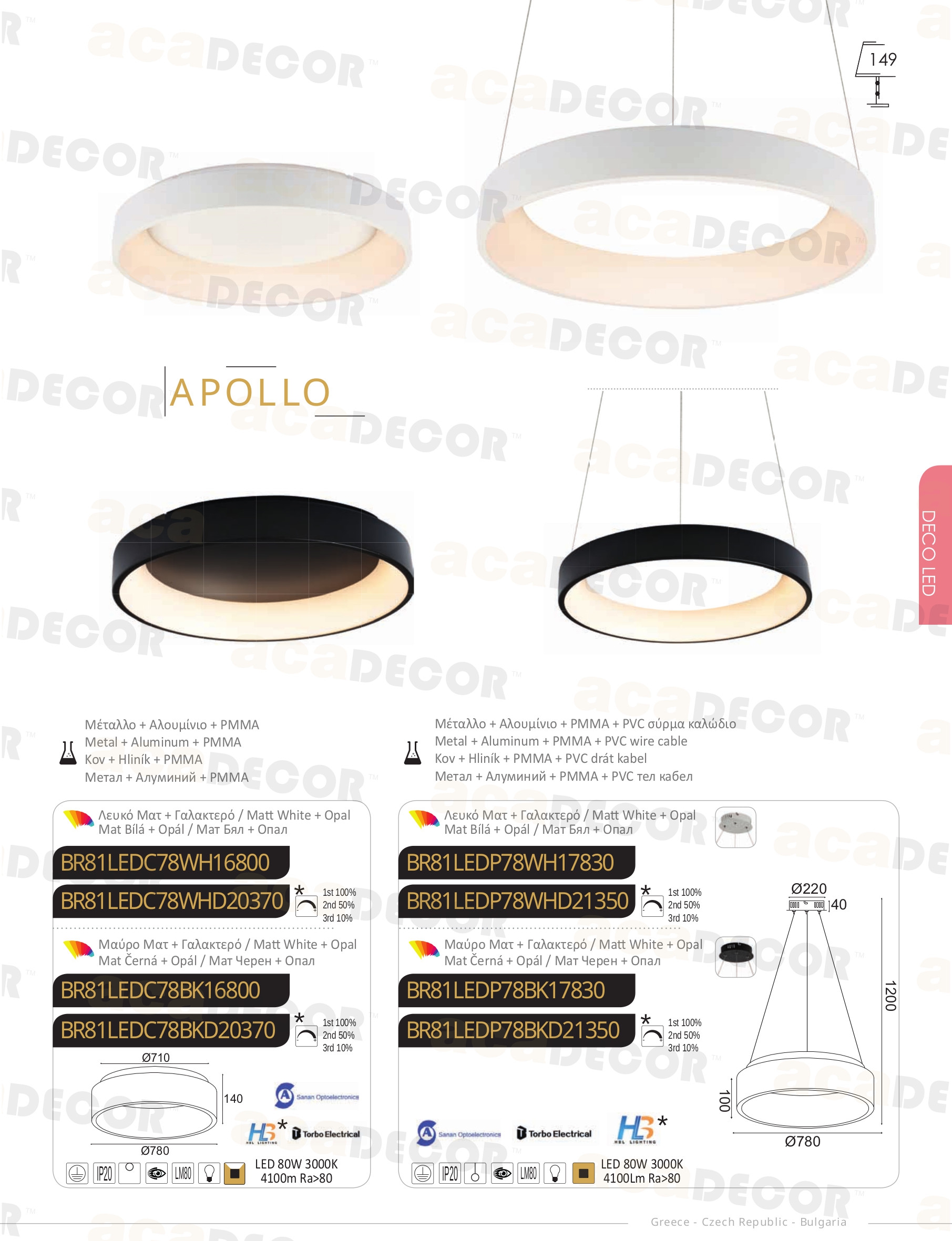 Ел. мощност 1 х 80 W Размери Ф78см x 10см x 120см Производител ACA-Lighting, Гърция