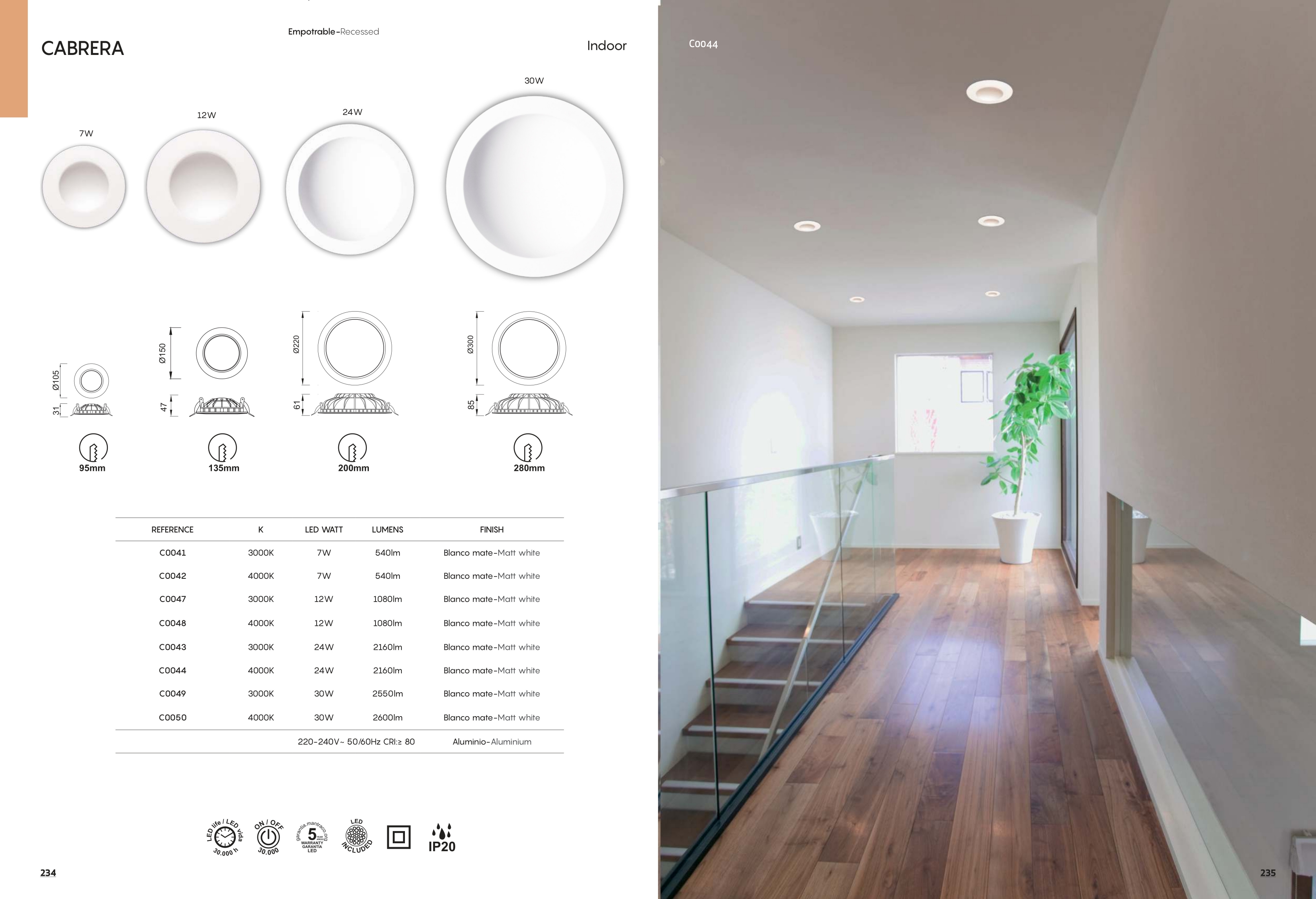 Осветителното тяло C0049 Matt White 30W 3000K 2550lm CABRERA представлява лед луничка / луна в съвременен стил. C0049 Matt White 30W 3000K 2550lm CABRERA е от категорията и е подходящо за осветяване на различни помещения и пространства като: всекидневна / хол, спалня, кухня, трапезария, коридор, антре, стълбище, офис.
