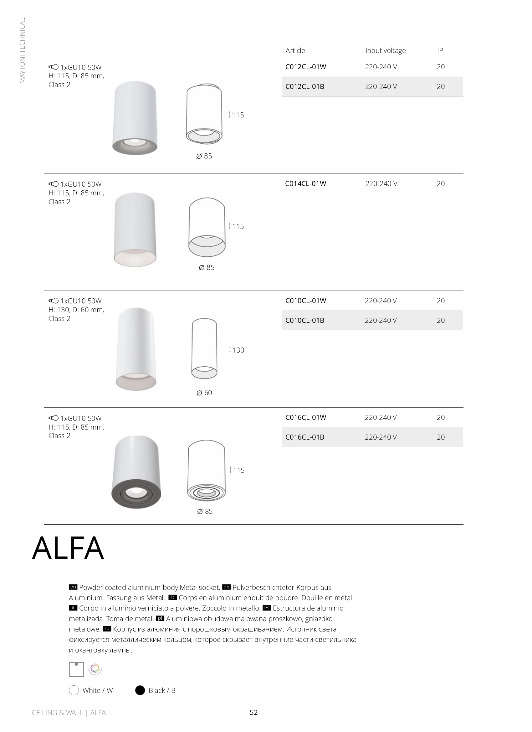 Осветителното тяло C010CL-01W ще осигури комфорт и естетика във всяко помещение, в което се постави. Цялостната визия и дизайн на лампата и вложените в изработката й материали, като алуминий в бял цвят, ще допринесат за един неповторим стил. Благодарение на дългогодишния опит, качествените материали и строгия контрол на качеството на изработка на производителя Maytoni (Германия), C010CL-01W е на високо европейско ниво.