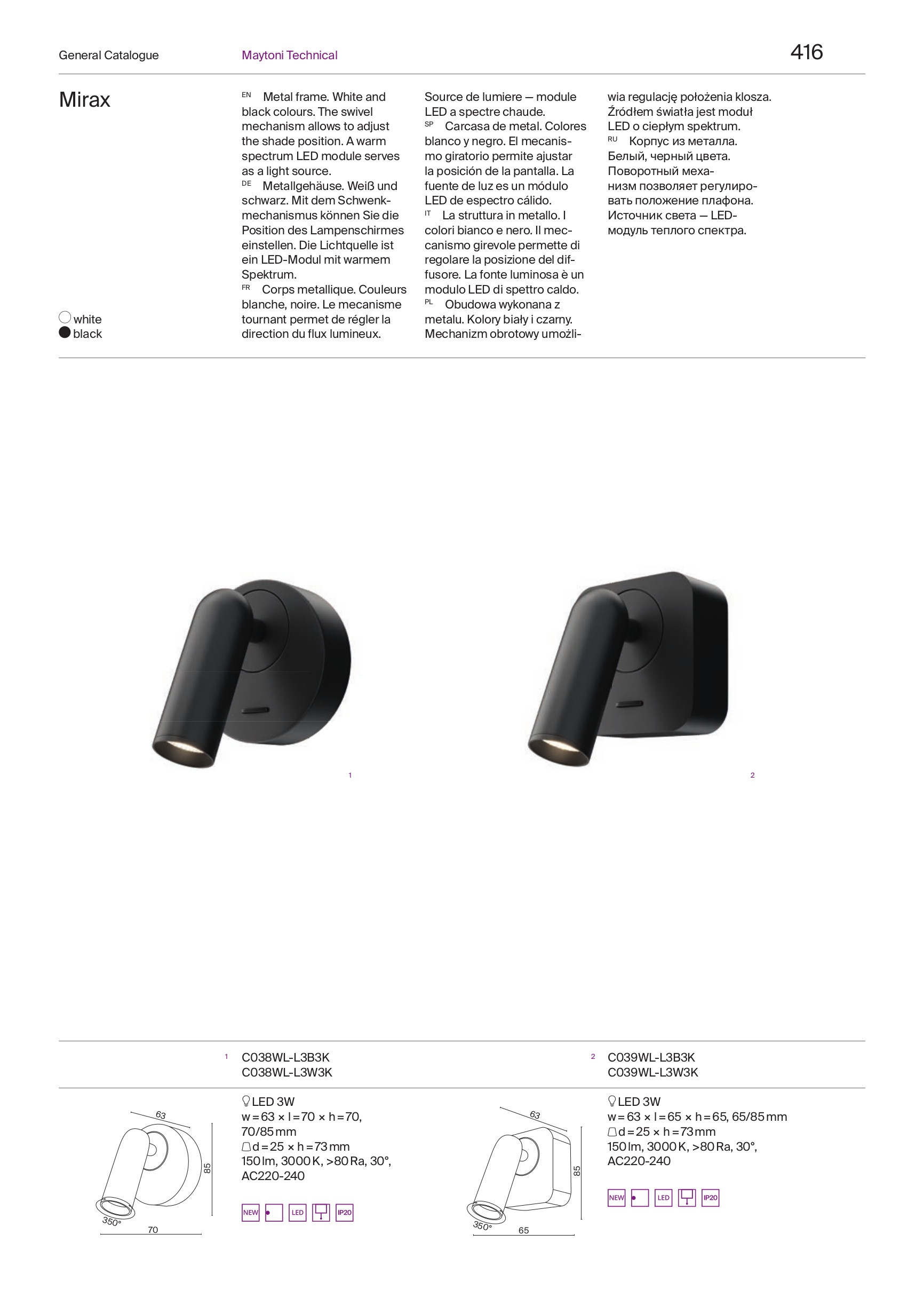 Осветителното тяло C039WL-L3W3K представлява лед аплик, спот лампа в съвременен стил. C039WL-L3W3K е от категорията и е подходящо за осветяване на различни помещения и пространства като: спалня.