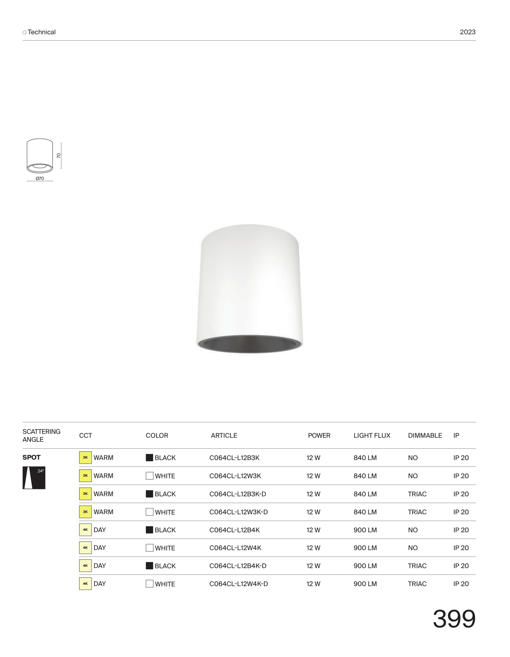 алуминиев корпус в бял цвят с вграден разсейвател от полимер в черно, малък ъгъл на разсейване на светлината - 24°