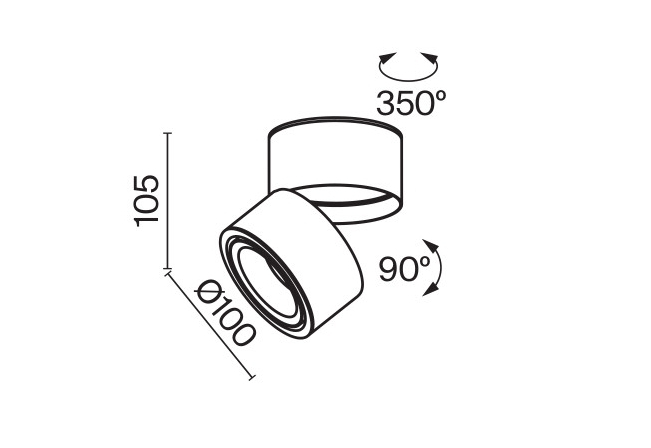 метал в черен цвят, леща концентрираща светлинния поток за ярко акцентно осветление, въртящ се шарниран механизъм за насочване на светлината в желаната посока, тесен светлинен сноп 24°
