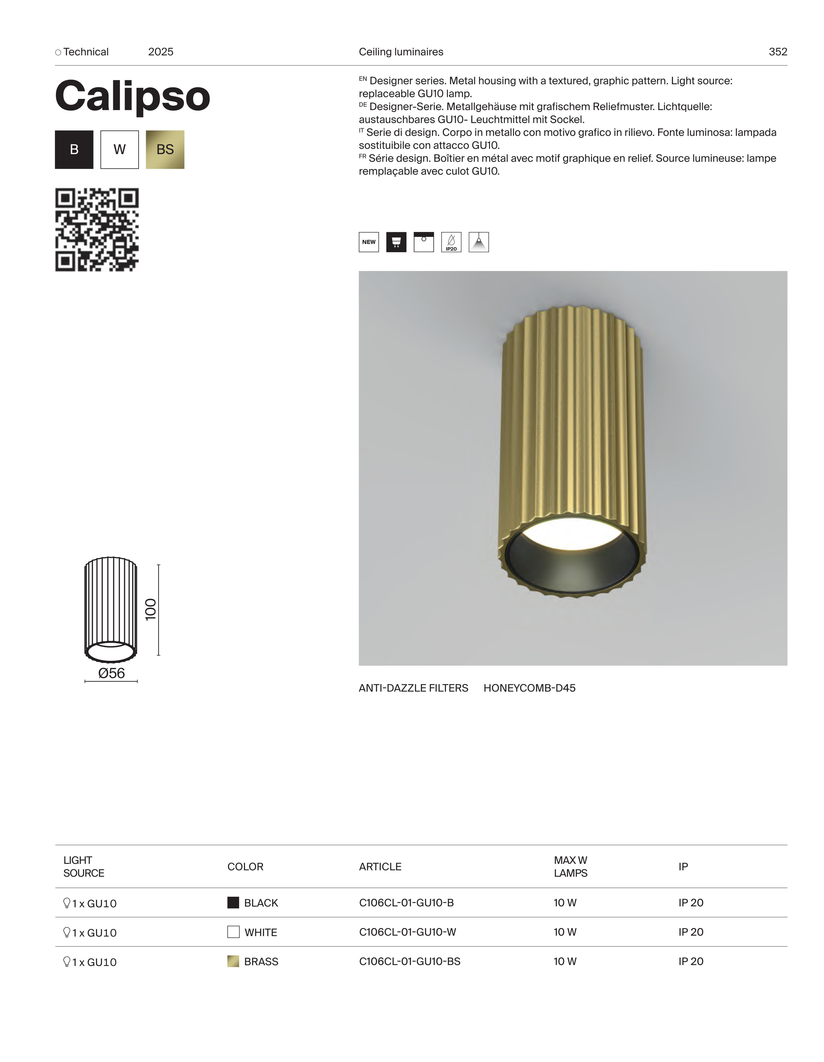 Ел. мощност 1 х 10 W Размери Ф5.6см x 10см Производител Maytoni, Германия