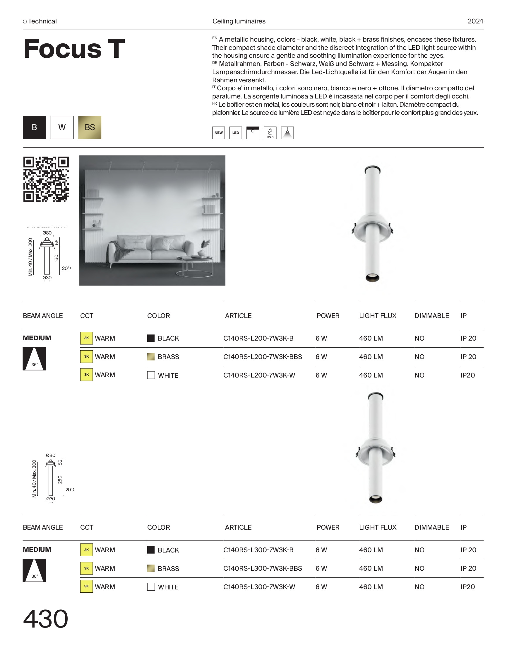 алуминий в цвят черно и месинг, възможност за накланяне до 20°, ъгъл на разсейване на светлината 36°