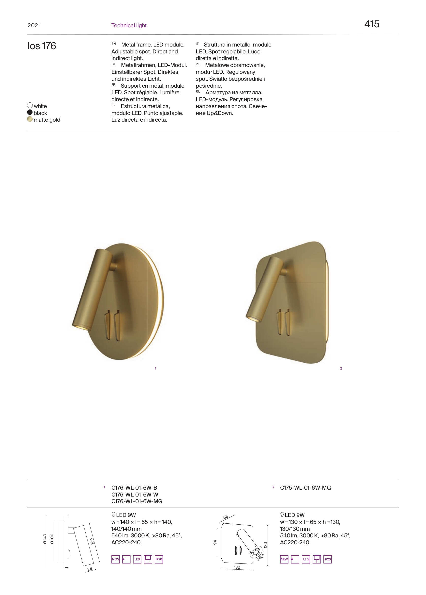 Осветителното тяло C176-WL-01-6W-MG ще осигури комфорт и естетика във всяко помещение, в което се постави. Цялостната визия и дизайн на лампата и вложените в изработката й материали, като алуминий в цвят матово злато, директна и индиректна светлина, два ключа ON/OFF, ще допринесат за един неповторим стил. Благодарение на дългогодишния опит, качествените материали и строгия контрол на качеството на изработка на производителя Maytoni (Германия), C176-WL-01-6W-MG е на високо европейско ниво.