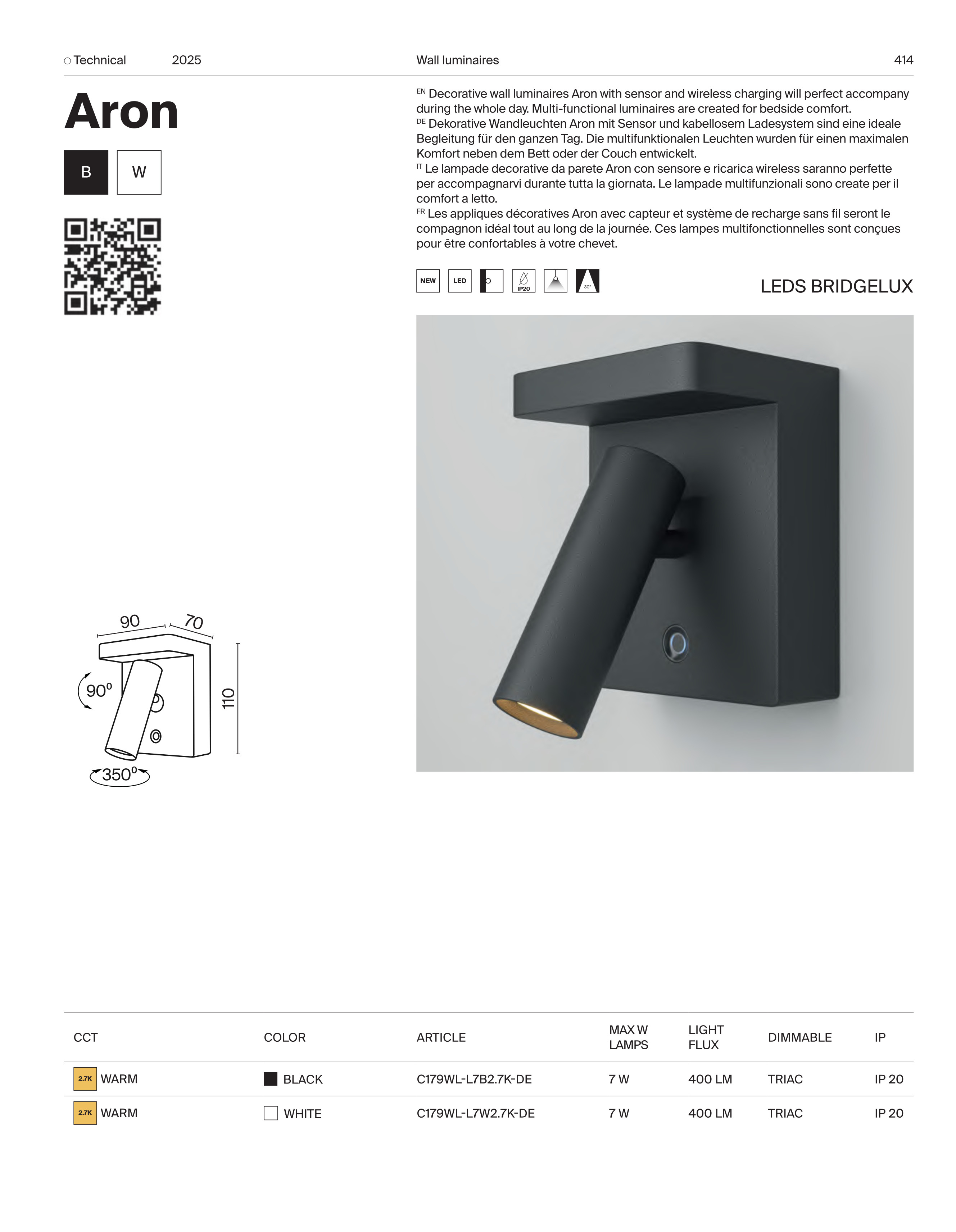 Лед аплик C179WL-L7B2.7K-DE ще осигури комфорт и естетика във всяко помещение, в което се постави. Цялостната визия и дизайн на led лампата и вложените в изработката й материали, като алуминий в черен цвят, thouch сензор за димиране, безжично зареждане за смартфони, насочваема светлина, ще допринесат за един неповторим стил. Благодарение на дългогодишния опит в производството на лед осветление, качествените материали и строгия контрол на качеството на изработка на производителя Maytoni (Германия), C179WL-L7B2.7K-DE е на високо европейско ниво.