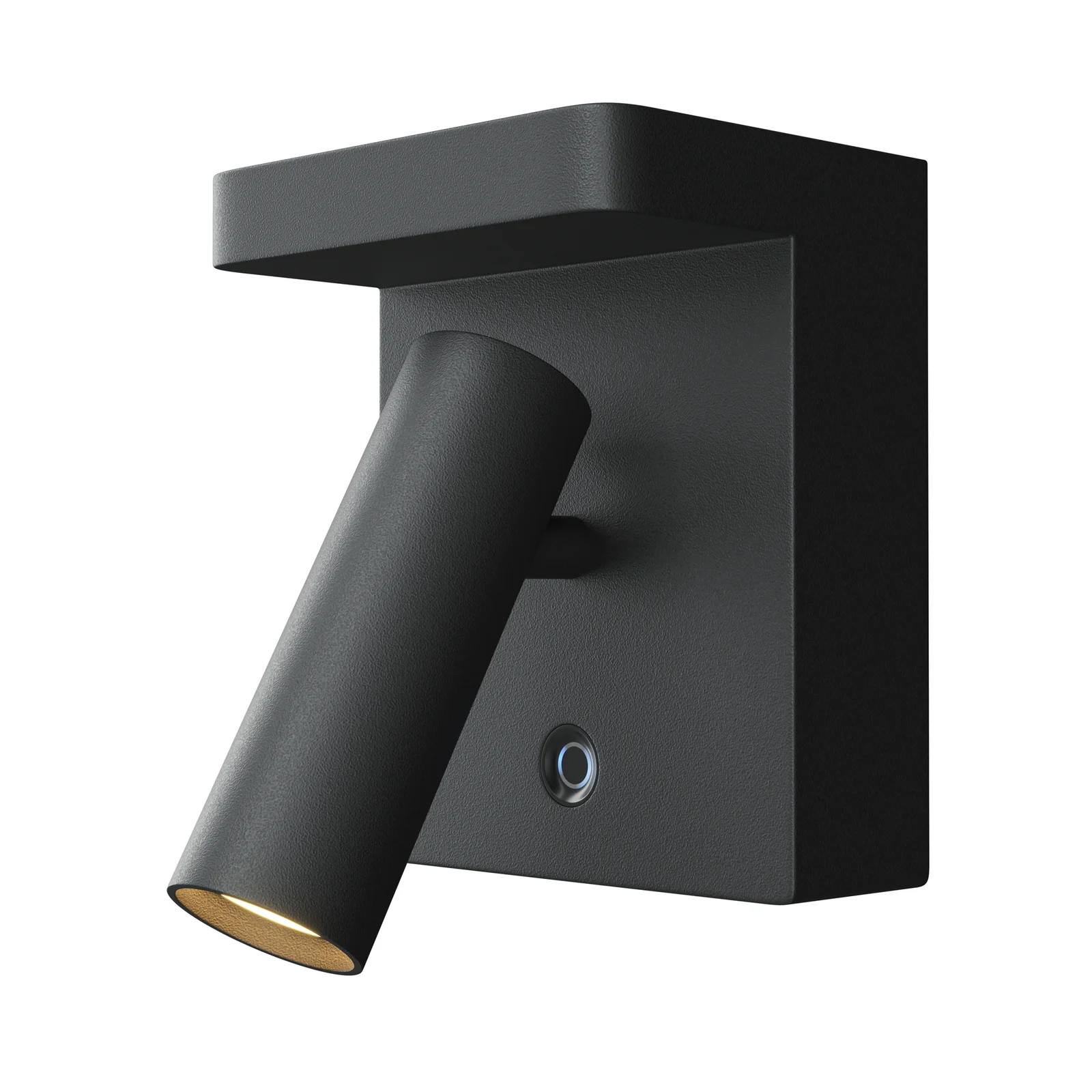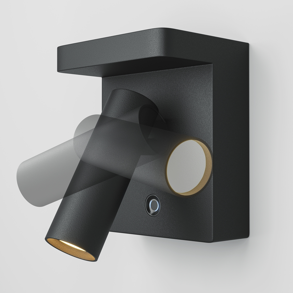 алуминий в черен цвят, thouch сензор за димиране, безжично зареждане за смартфони, насочваема светлина