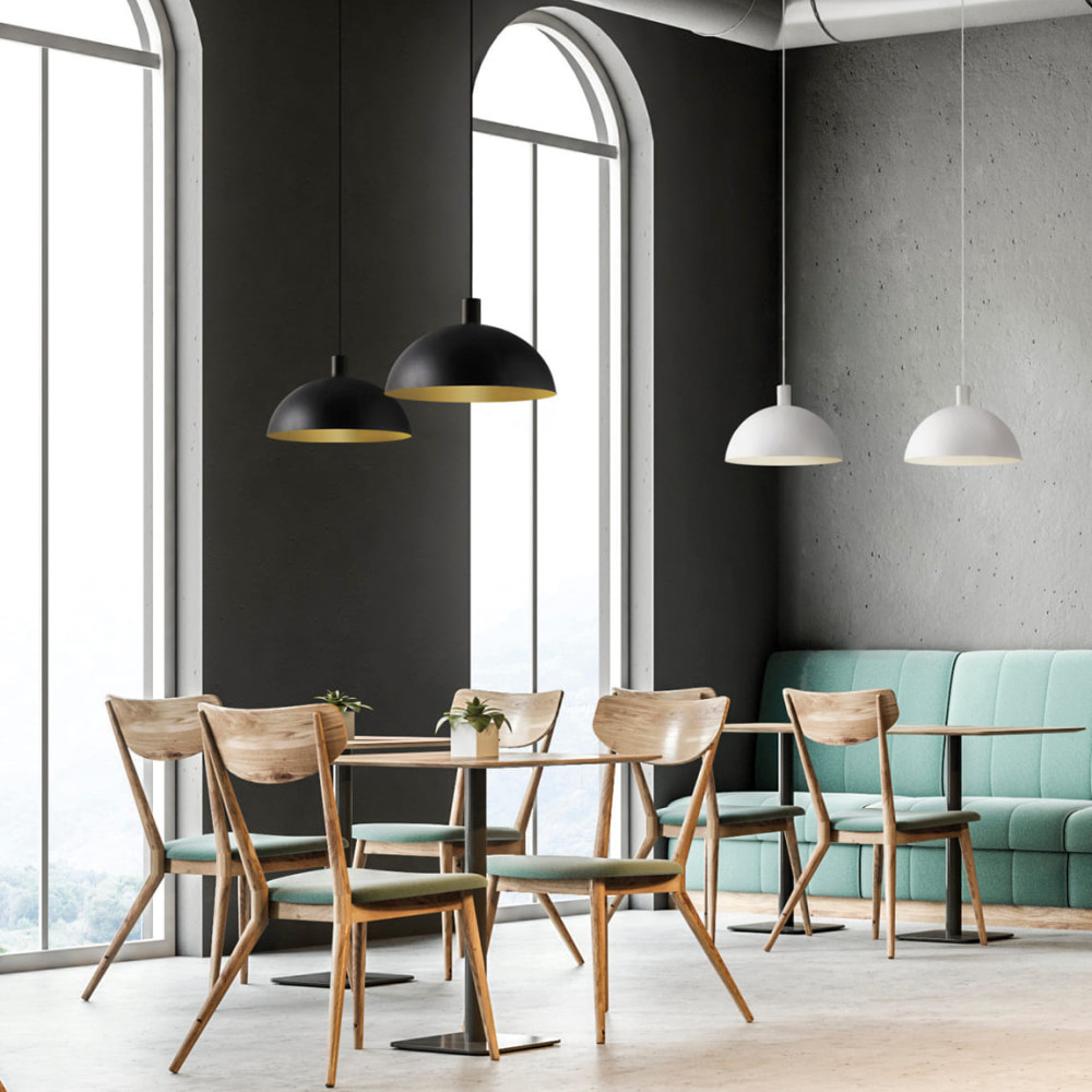 Стилът и естетиката на обстановката ще се обогатят благодарение, както на цялостната визия и дизайн на осветителното тяло, така и на вложените в изработката му, качествени материали, като: метал в матово черен цвят отвън и в цвят техническо злато отвътре с черен кит.