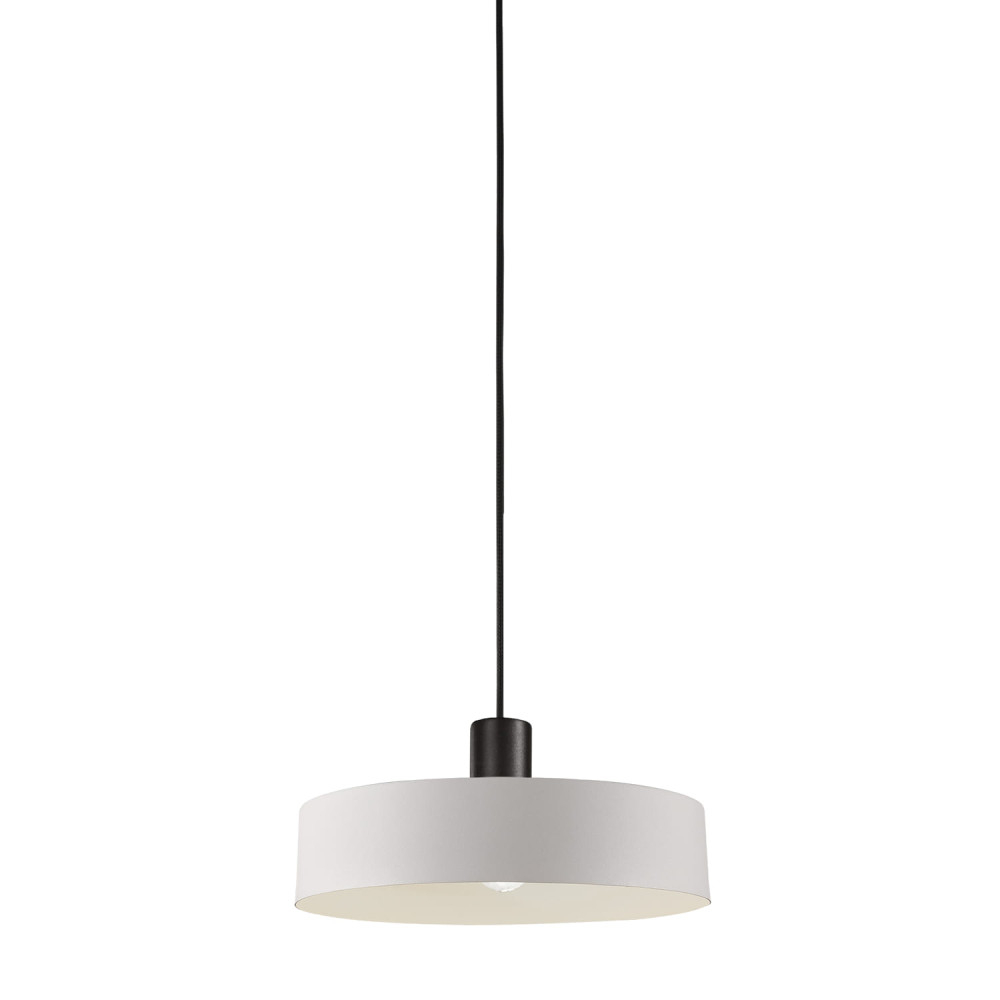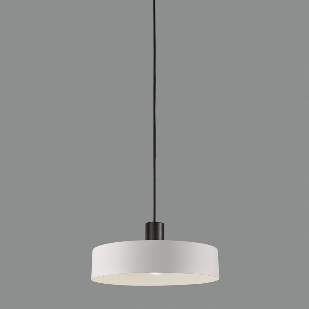 Стилът и естетиката на обстановката ще се обогатят благодарение, както на цялостната визия и дизайн на осветителното тяло, така и на вложените в изработката му, качествени материали, като: метал в матово бяло, с черна розетка и черен кабел.