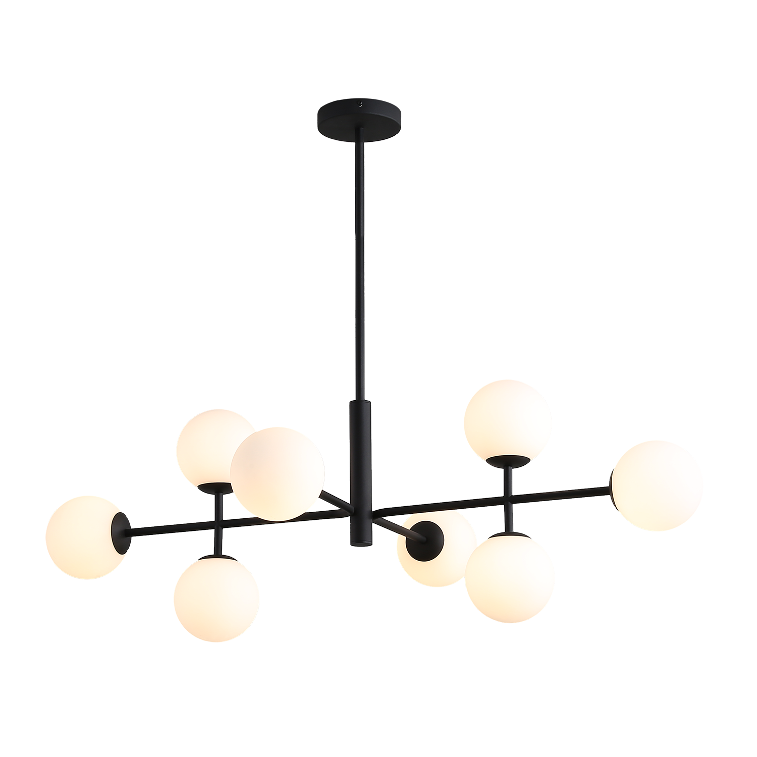 За стила и естетиката на интериора допринасят, както цялостната визия и дизайн на осветителното тяло, така и вложените от производителя в изработката висококачествени материали, като метал в черен цвят, стъкло в цвят бял опал.