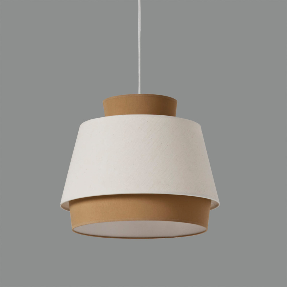 Стилът и естетиката на обстановката ще се обогатят благодарение, както на цялостната визия и дизайн на осветителното тяло, така и на вложените в изработката му, качествени материали, като: памук/лен в пясъчно и бяло, метал в бяло.