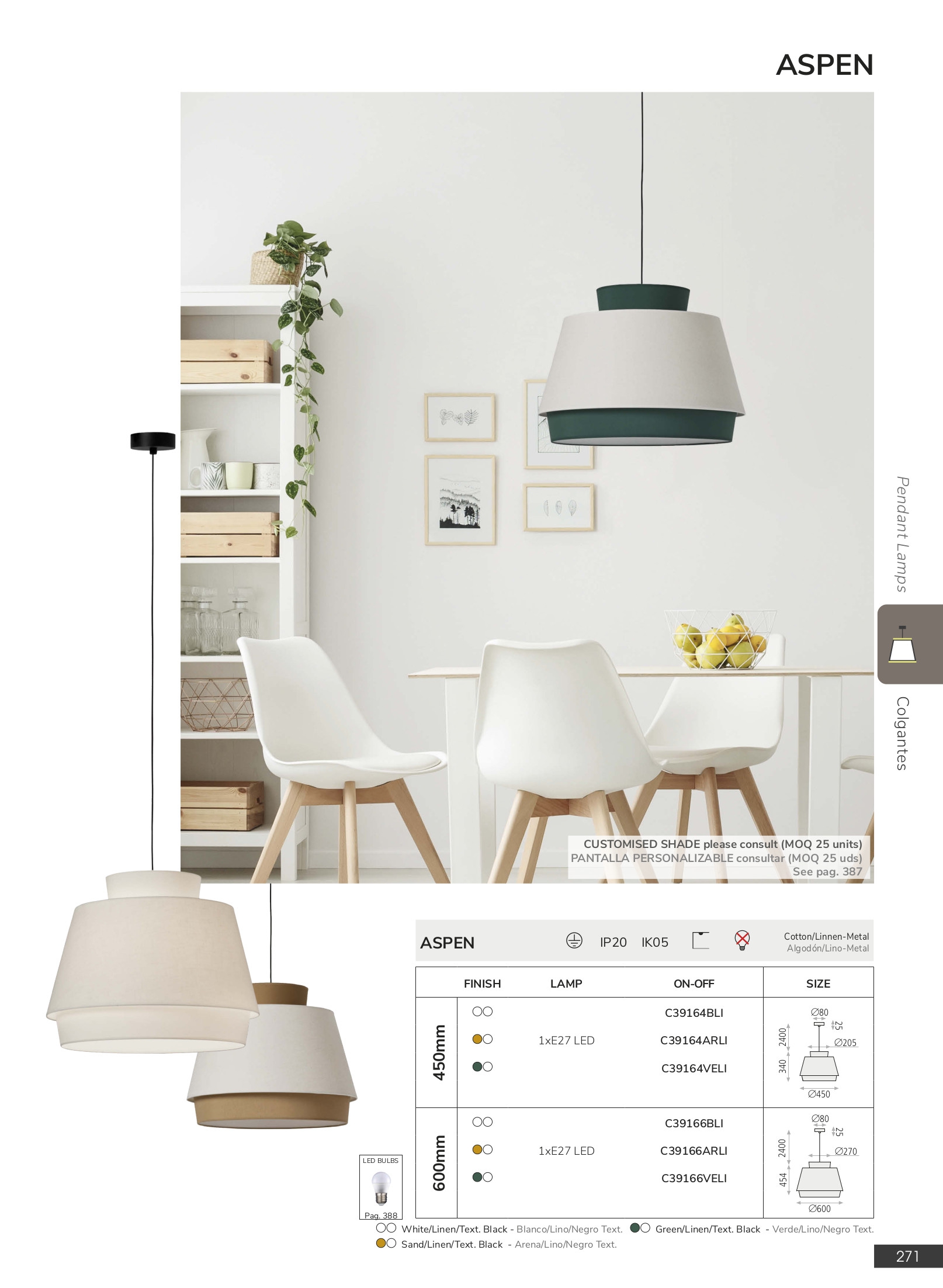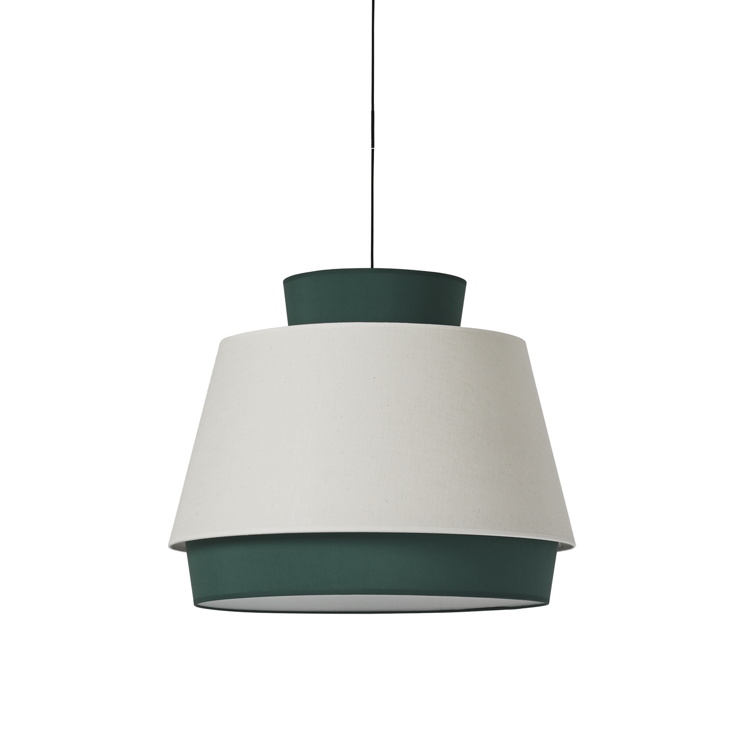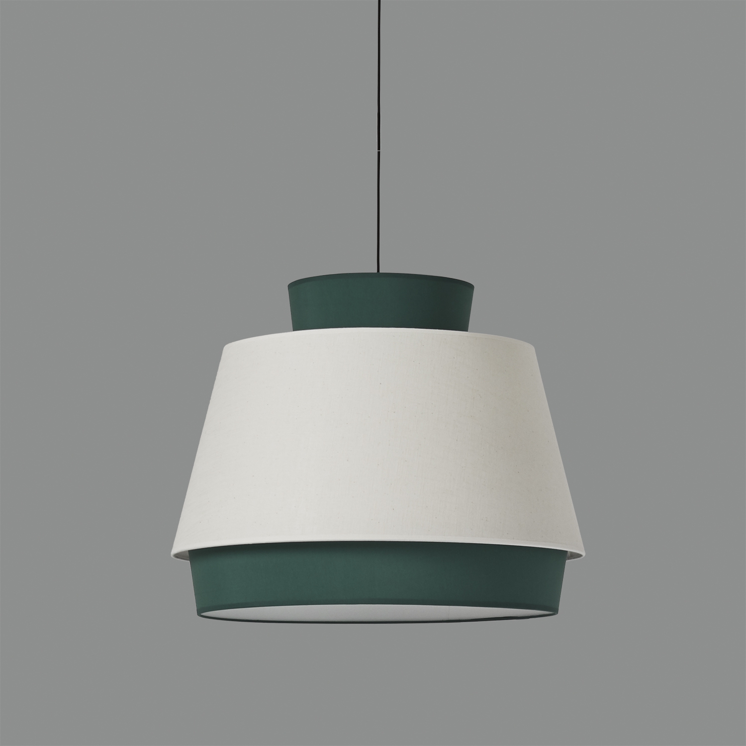 Стилът и естетиката на обстановката ще се обогатят благодарение, както на цялостната визия и дизайн на осветителното тяло, така и на вложените в изработката му, качествени материали, като: памук/лен в зелено и бяло, метал в текстурирано черно.