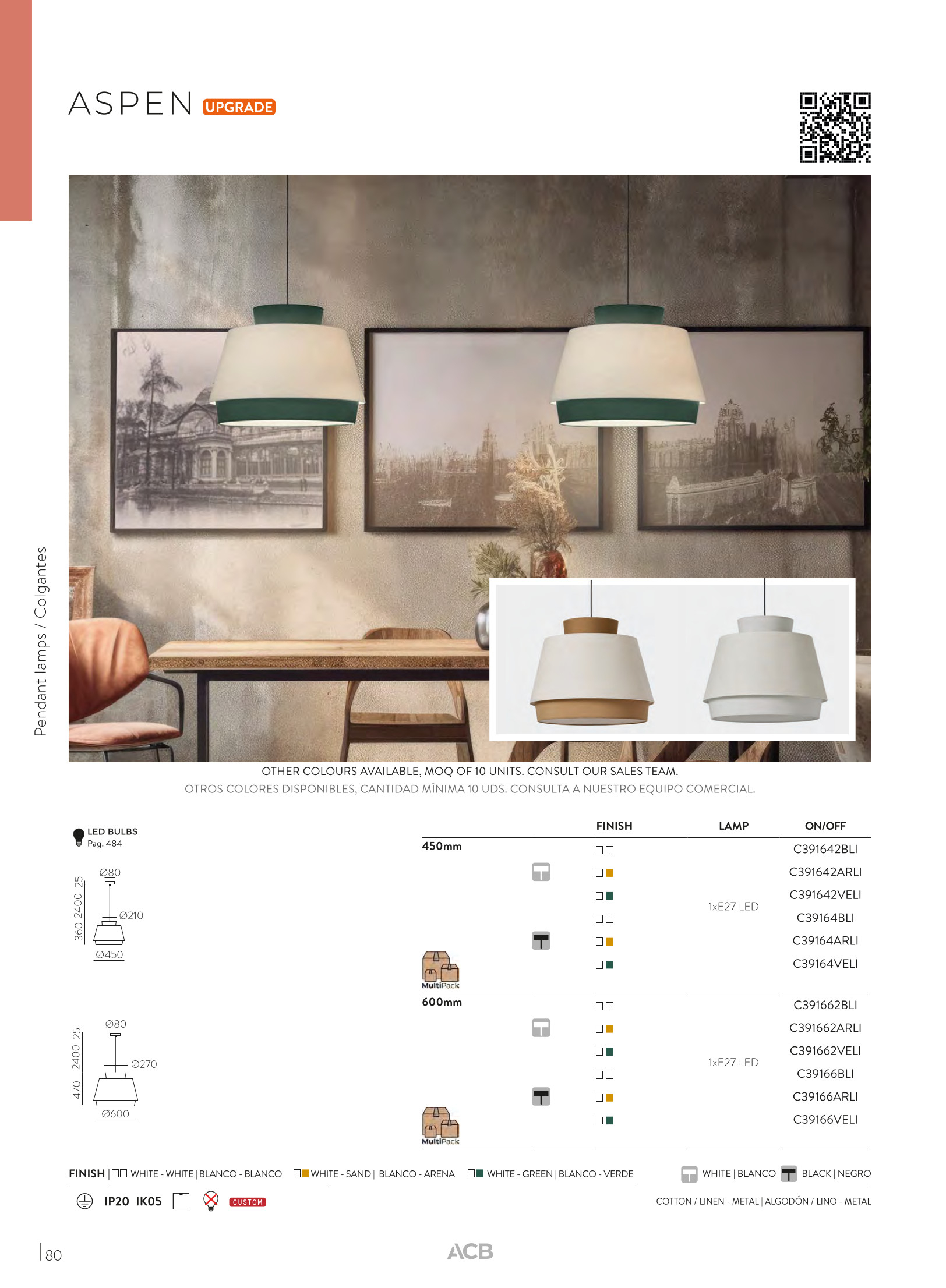 За стила и естетиката на интериора допринасят, както цялостната визия и дизайн на осветителното тяло, така и вложените от производителя в изработката висококачествени материали, като памук/лен в пясъчно и бяло, метал в бяло.