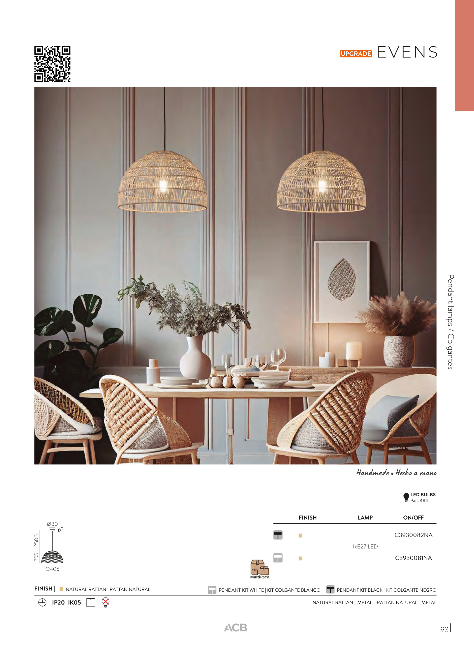 Осветителното тяло C3930082NA (3930/40 Pend. 1xE27 15W Rattan) ще осигури комфорт и естетика във всяко помещение, в което се постави. Цялостната визия и дизайн на лампата и вложените в изработката й материали, като ратан, метал и PVC кабел в черен цвят, ръчна изработка, ще допринесат за един неповторим стил. Благодарение на дългогодишния опит, качествените материали и строгия контрол на качеството на изработка на производителя ACB (Испания), C3930082NA (3930/40 Pend. 1xE27 15W Rattan) е на високо европейско ниво.