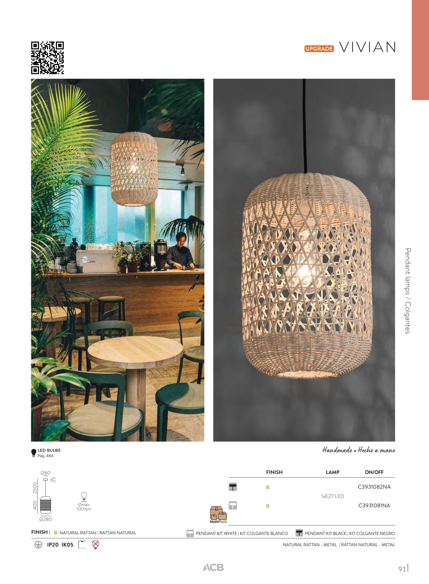 Осветителното тяло C3931082NA (Pendant/40cm Natural Raffia) ще осигури комфорт и естетика във всяко помещение, в което се постави. Цялостната визия и дизайн на лампата и вложените в изработката й материали, като ратан, метал и PVC кабел в черен цвят, ръчна изработка, ще допринесат за един неповторим стил. Благодарение на дългогодишния опит, качествените материали и строгия контрол на качеството на изработка на производителя ACB (Испания), C3931082NA (Pendant/40cm Natural Raffia) е на високо европейско ниво.