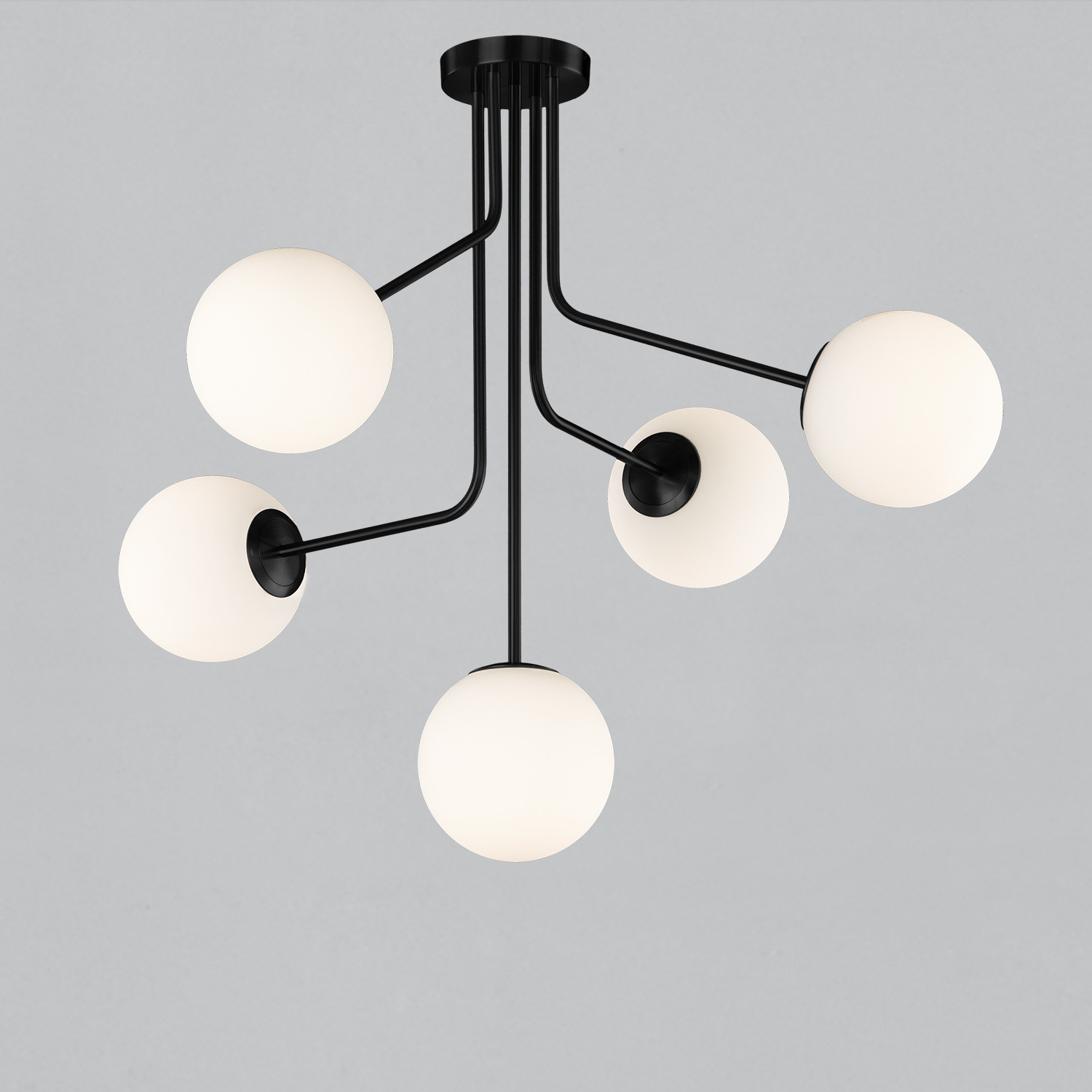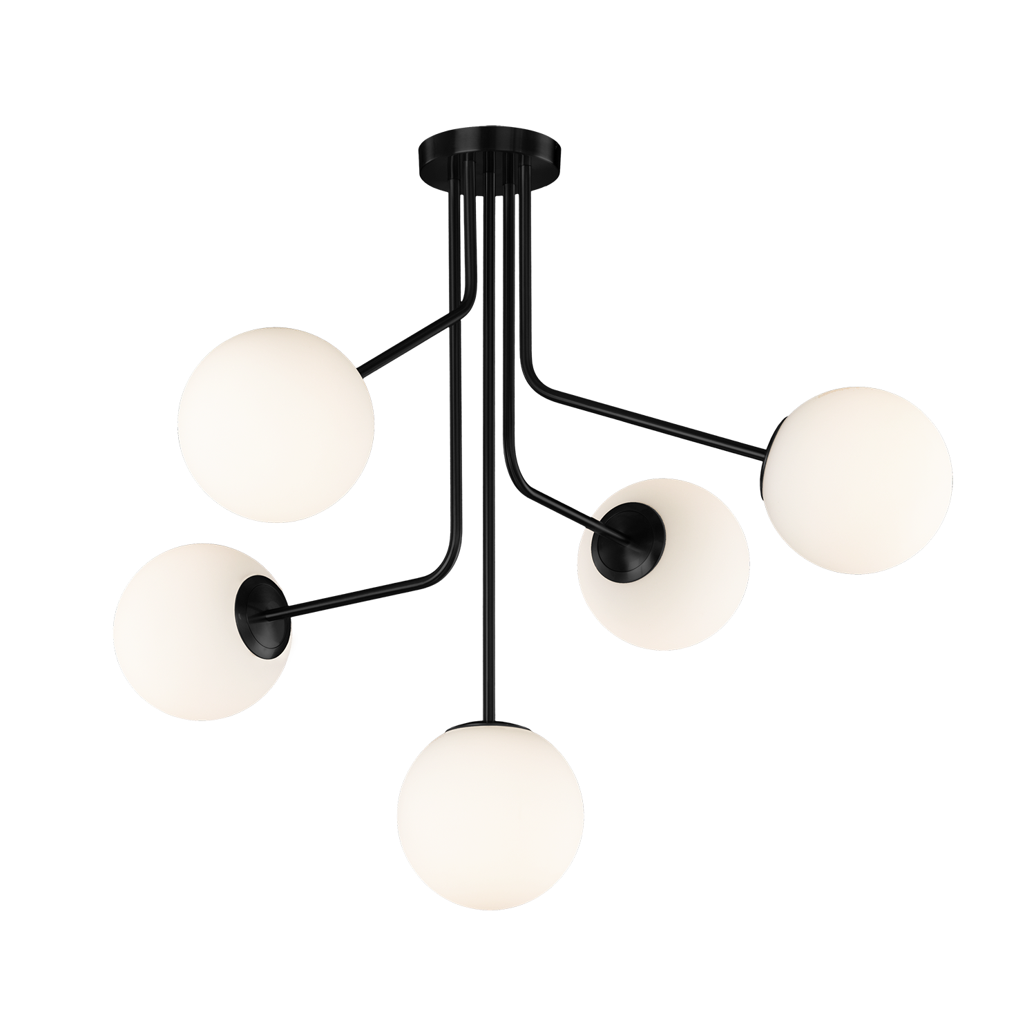 За стила и естетиката на интериора допринасят, както цялостната визия и дизайн на осветителното тяло, така и вложените от производителя в изработката висококачествени материали, като метал в черен цвят, двуслойно стъкло в цвят опал.