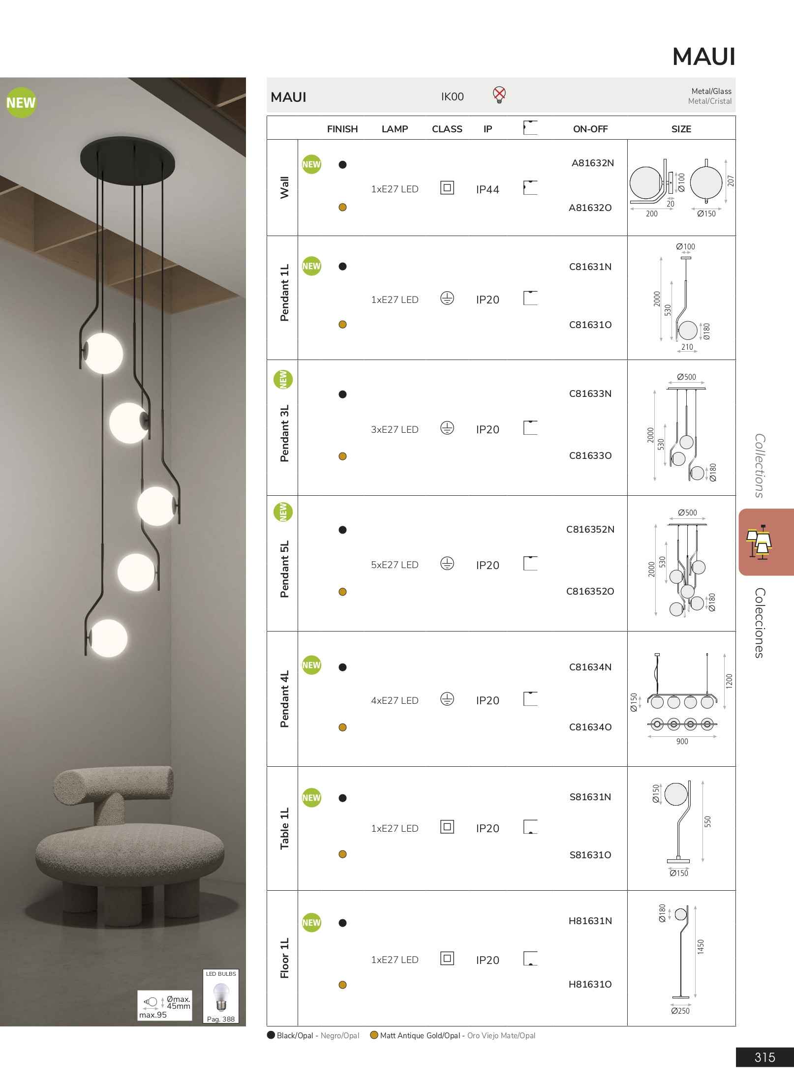 полилей C81634N (8163/4L E27 Pend Opal/Smooth Matt Black)