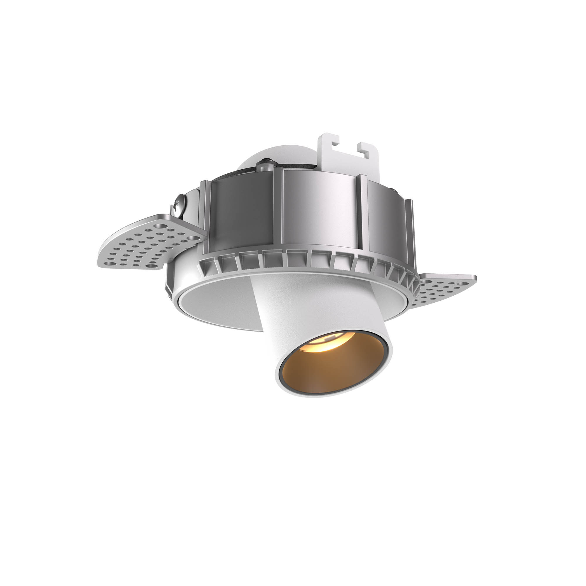 рамка и проектор от лят под налягане алуминий, с електростатично нанесено покритие в бяло с пясъкоструйна технология, фиксиращата рамка на проектора е от бял поликарбонат, драйвърът се поръчва отделно