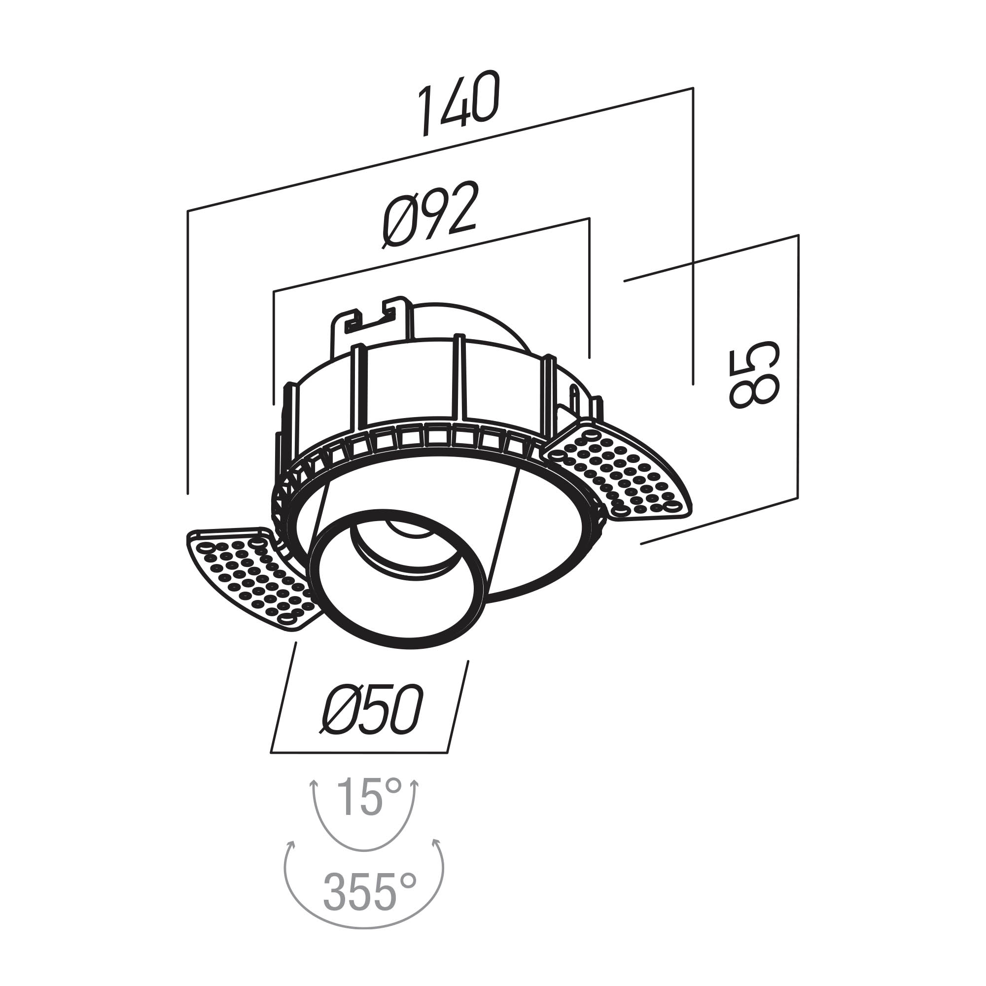 рамка и проектор от лят под налягане алуминий, с електростатично нанесено покритие в бяло с пясъкоструйна технология, фиксиращият пръстен на проектора е от бял поликарбонат, драйвъра се поръчва отделно