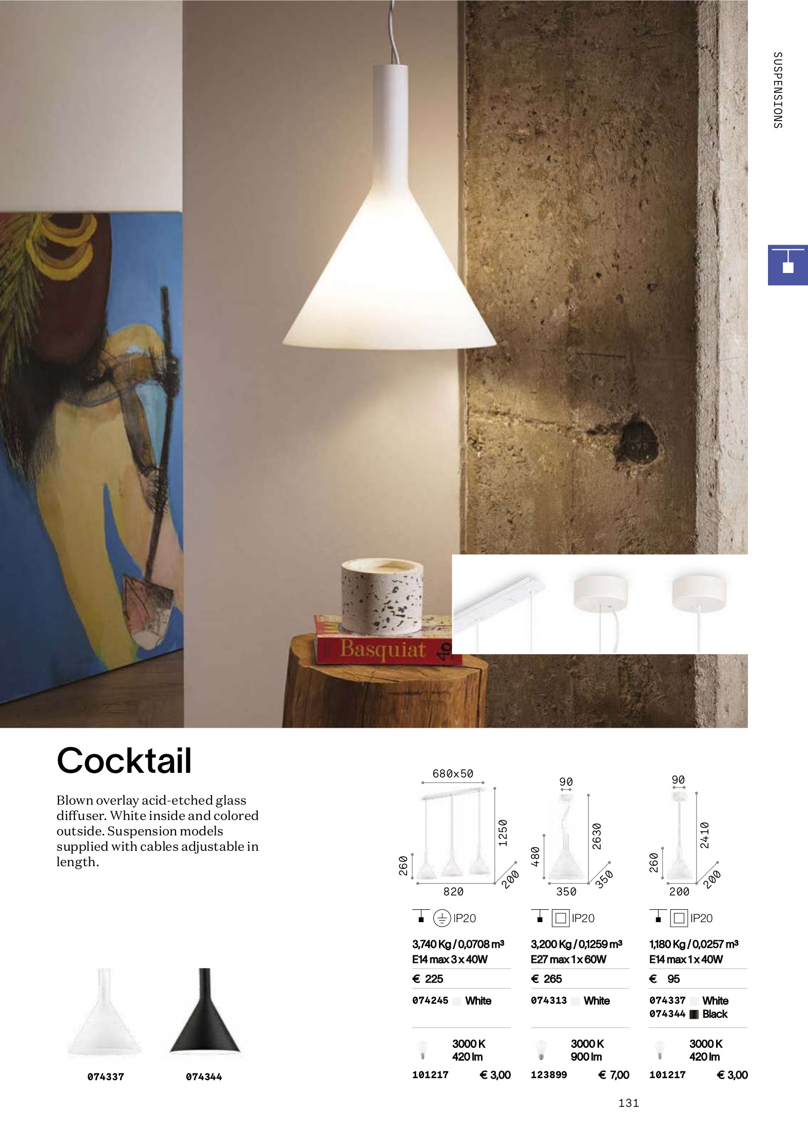 Осветителното тяло COCKTAIL SP1 SMALL NERO ще осигури комфорт и естетика във всяко помещение, в което се постави. Цялостната визия и дизайн на лампата и вложените в изработката й материали, като издухано стъкло с киселинно наслагване на цвета в черен цвят отвън и бял отвътре, ще допринесат за един неповторим стил. Благодарение на дългогодишния опит, качествените материали и строгия контрол на качеството на изработка на производителя Ideal-Lux (Италия), COCKTAIL SP1 SMALL NERO е на високо европейско ниво.