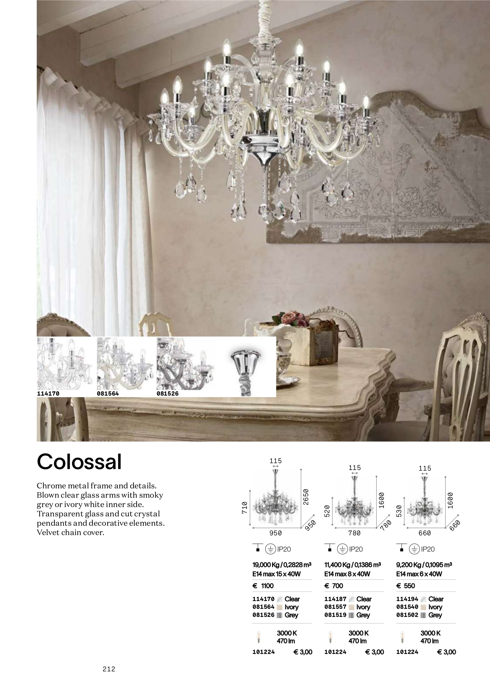 Магазини ОРИОН представят осветителното тяло COLOSSAL SP15 TRASPARENTE, което представлява полилей в класически стил. Лампата е част от категорията полилеи и е подходяща за различни помещения и пространства, като например всекидневна / хол, спалня, трапезария, офис.