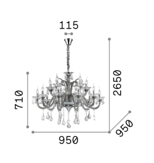 Ел. мощност 15 х 40 W Размери Ф95см x 71см x 265см Производител Ideal-Lux, Италия