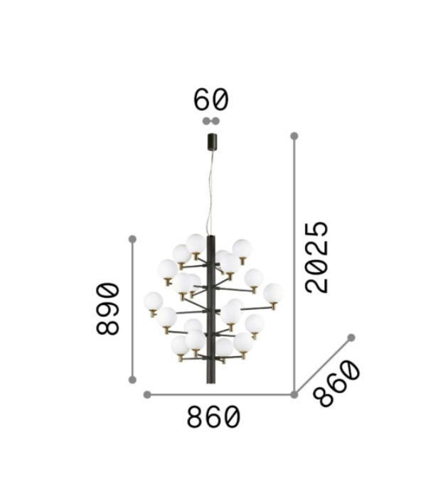 Ел. мощност 20 х 3 W Размери Ф86см x 89см x 202.5см Производител Ideal-Lux, Италия