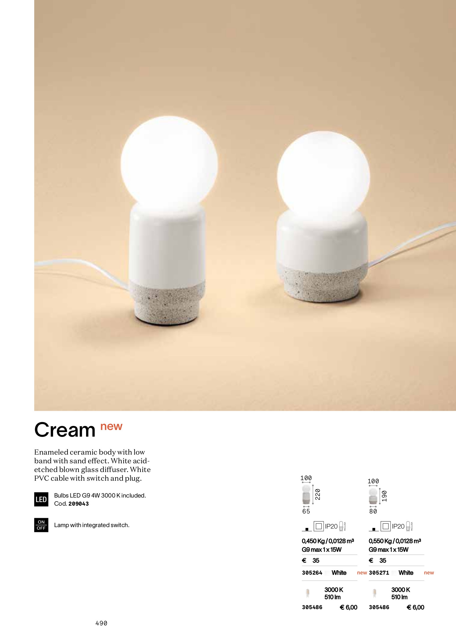 Стилът и естетиката на интериора ще се обогатят благодарение, както на цялостната визия, стил и дизайн на осветителното тяло, така и на вложените от производителя в изработката на CREAM TL1 D22, качествени материали, като: корпус от емайлирана керамика с пясъчен ефект, разсейвател от издухано стъкло с бяла киселина, бял PVC кабел с ключ и щепсел.