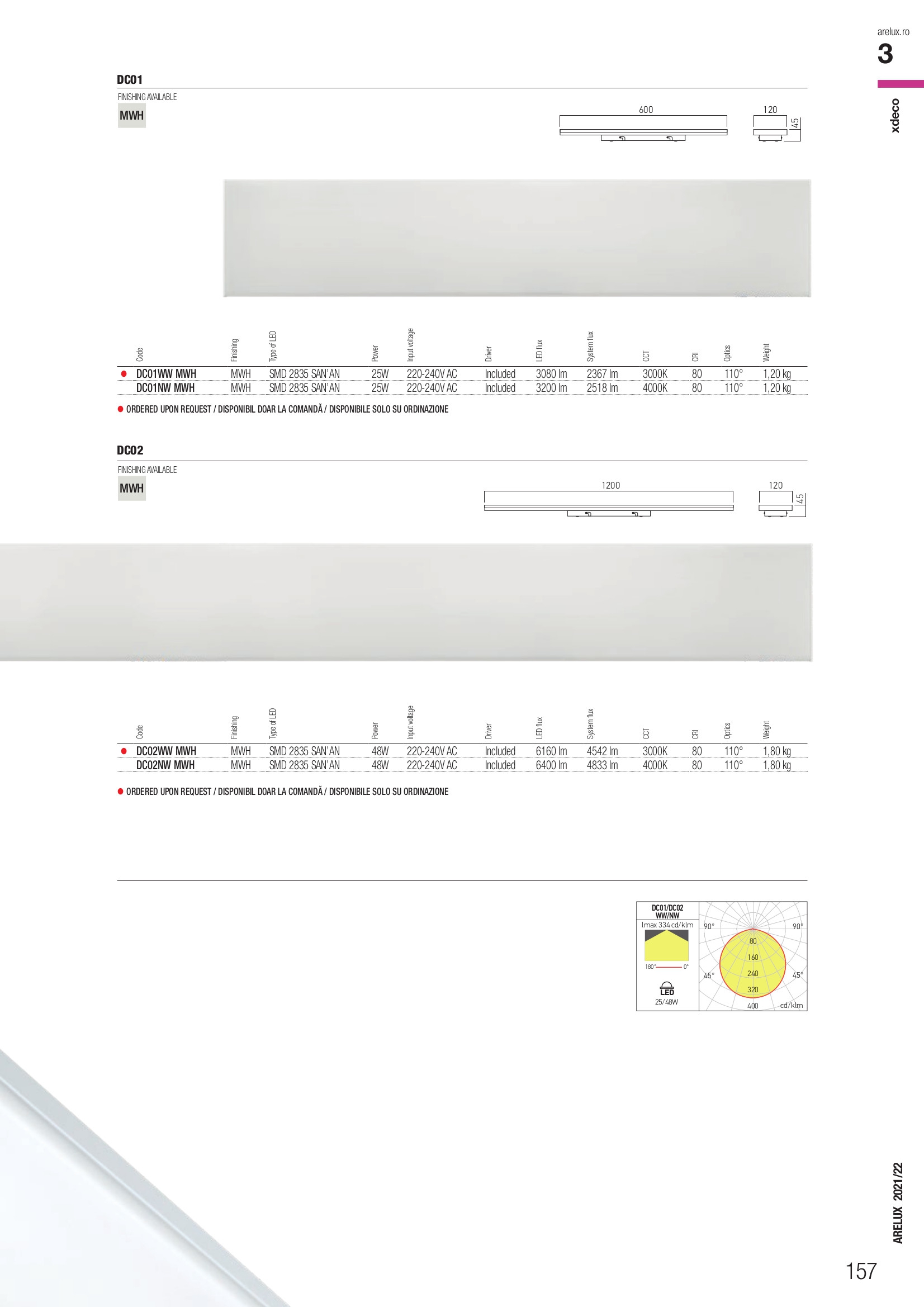 Осветителното тяло DC02NW MWH ще осигури комфорт и естетика във всяко помещение, в което се постави. Цялостната визия и дизайн на лампата и вложените в изработката й материали, като корпус от алуминиева плоскост с електростатично нанесено покритие в цвят бял мат с крайни капачки от поликарбонат, фиксираща система от стомана в бяло, дифузьор от опалово бял PMMA, ще допринесат за един неповторим стил. Благодарение на дългогодишния опит, качествените материали и строгия контрол на качеството на изработка на дизайнерската линия Redo Arelux на производителя Redo (Румъния), DC02NW MWH е на високо европейско ниво.